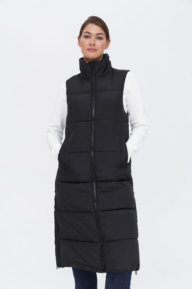 Жилет имеет удлиненный крой, который обеспечивает дополнительное тепло и комфорт в прохладную погоду. Стеганая фактура придает модели современный и стильный вид. Застежка-молния позволяет легко надевать и снимать жилет.
