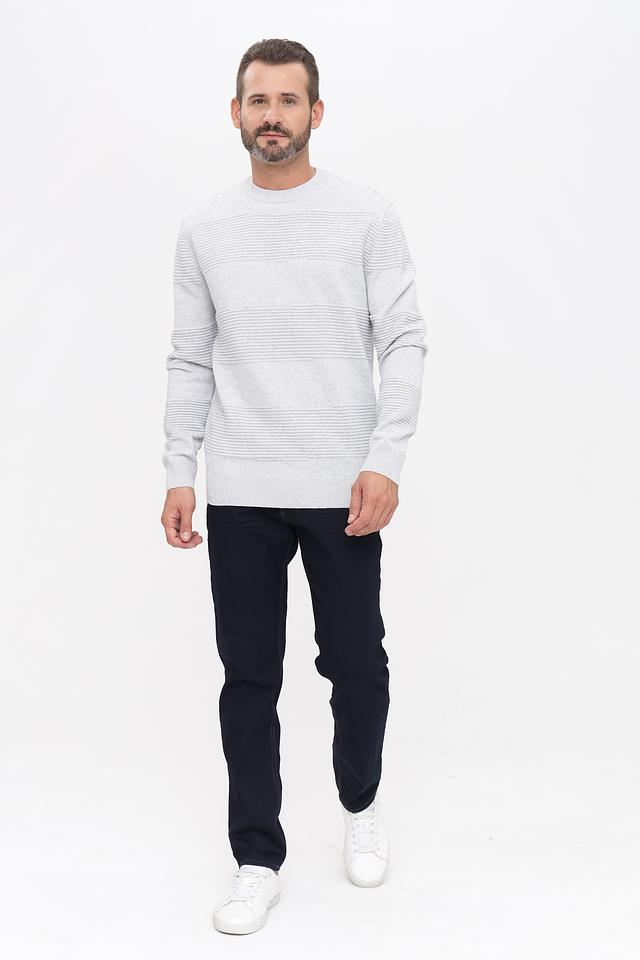 Джемпер изготовлен из высококачественного 100% хлопка, что обеспечивает приятные тактильные ощущения и комфорт в носке. Текстура полосатого узора добавляет изделию визуальный интерес и современный вид.