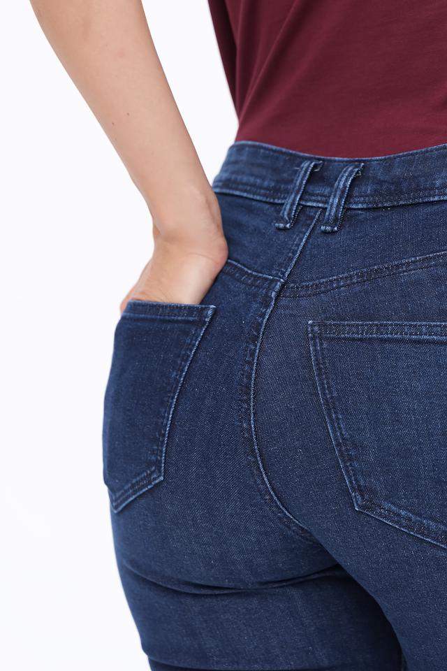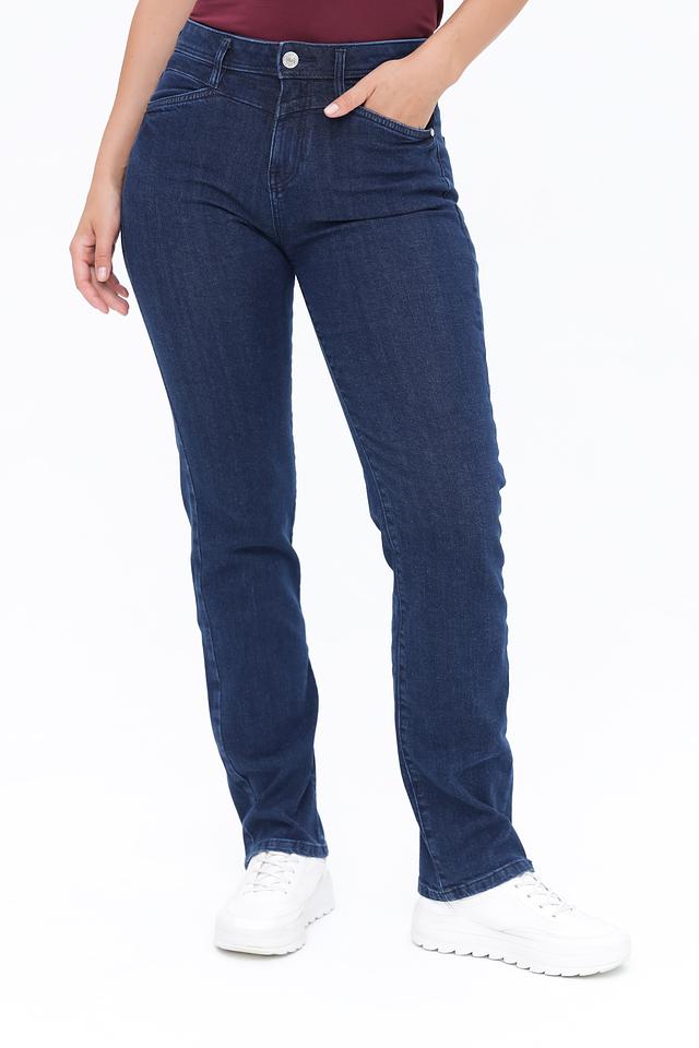 Джинсы имеют прямой крой, который обеспечивает комфортную посадку по фигуре и не сковывает движения. Высокая посадка визуально удлиняет ноги и подчеркивает талию. Ткань состоит из 99% хлопка и 1% эластана, что обеспечивает мягкость, приятные тактильные ощущения и небольшую эластичность.
