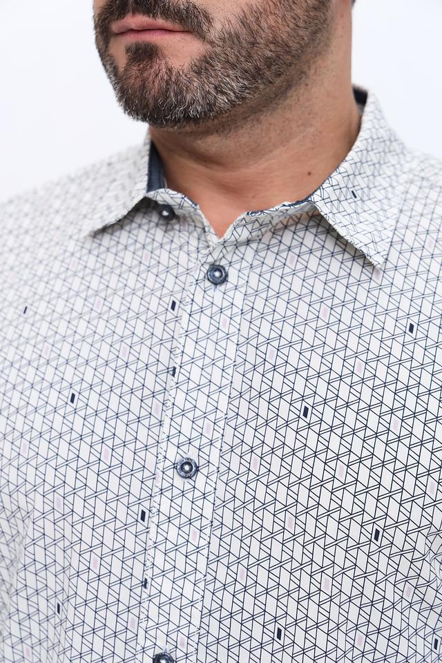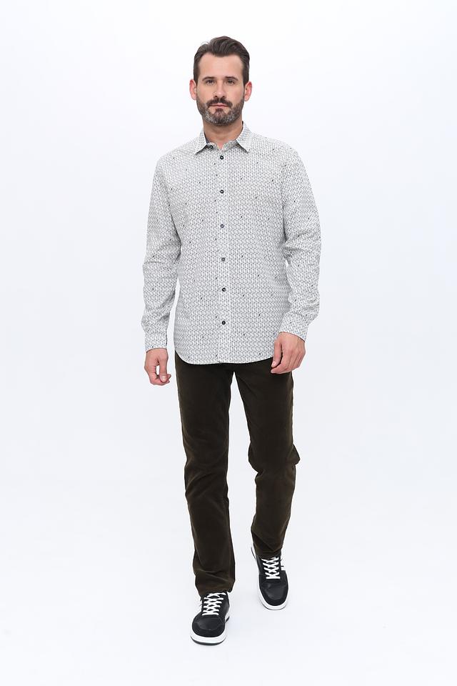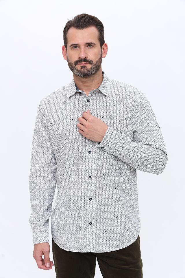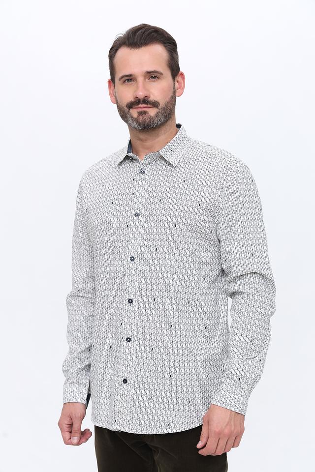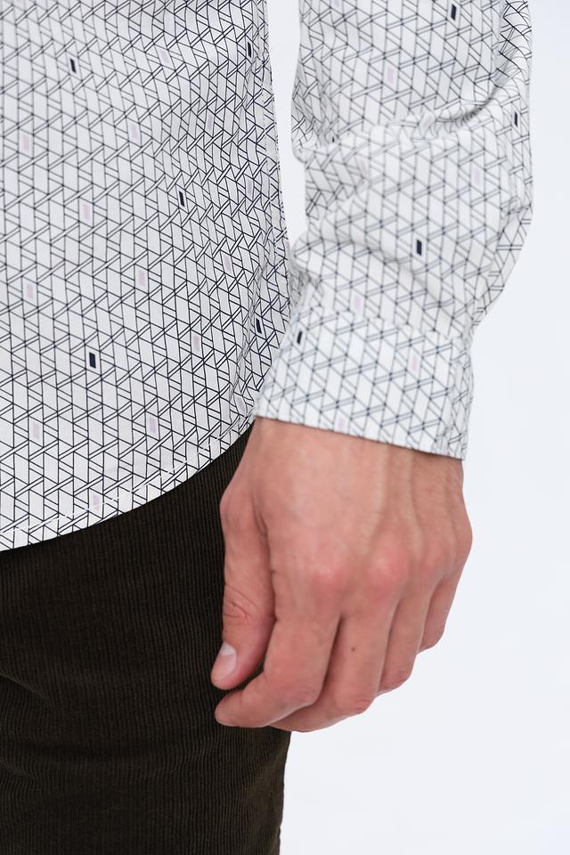 Мужская рубашка Tom Tailor белого цвета с геометрическим рисунком. Классический крой и длинный рукав делают эту рубашку универсальным элементом гардероба. Изготовлена из 100% хлопка, обеспечивающего комфорт в носке. Состав: хлопок 100%