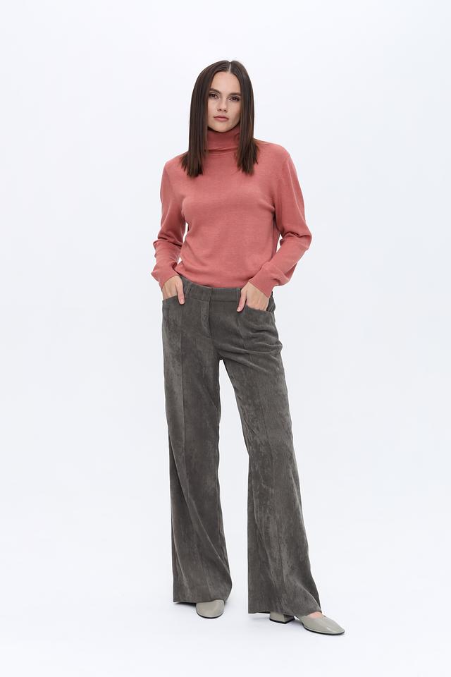 Модель имеет классический крой с длинными рукавами и высоким воротом, который не только согревает в прохладную погоду, но и придает образу элегантность.