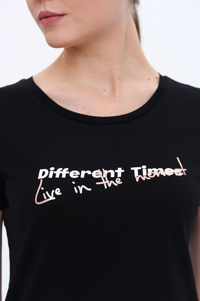 Особенностью данной модели является стильный принт с надписью на лицевой стороне, который придаёт ей индивидуальность и современный вид. Футболка имеет круглый вырез горловины и стандартную посадку.