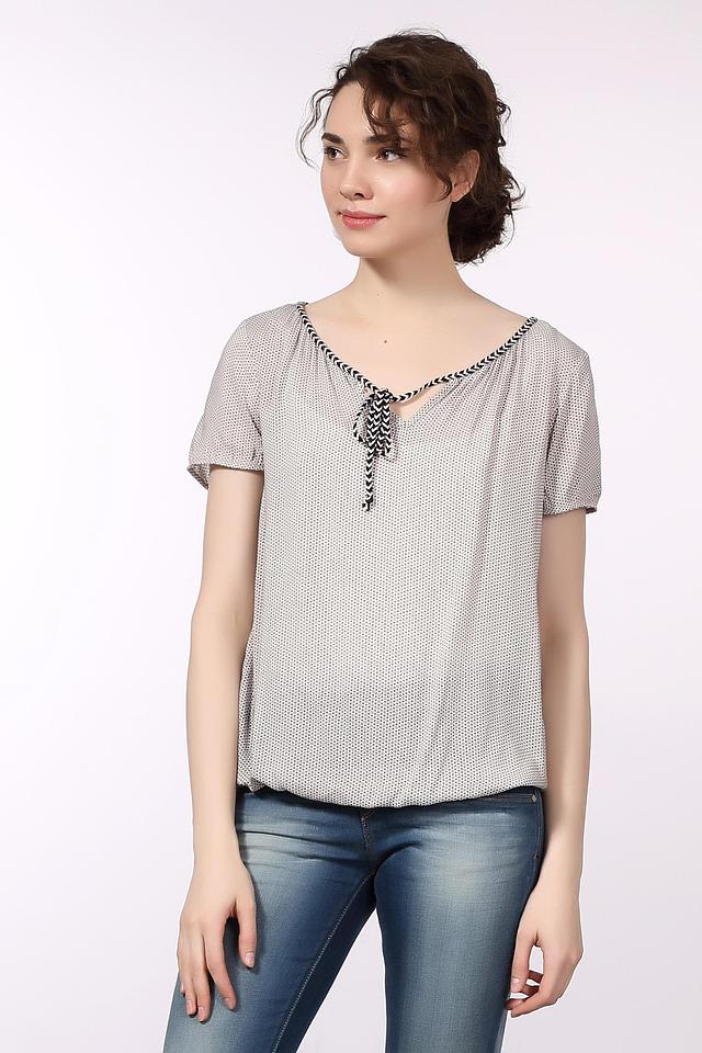 Стильная блуза Tom Tailor серого цвета с короткими рукавами и оригинальным декором в виде завязок на вырезе. Изготовлена из мягкой и приятной к телу вискозы, идеально подходит для создания повседневных образов. Состав: вискоза 100%