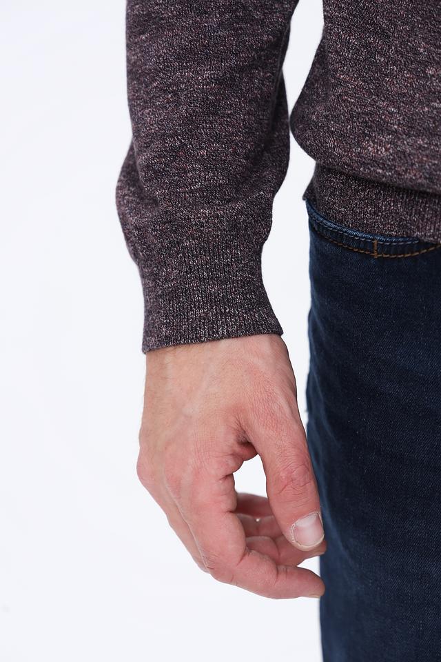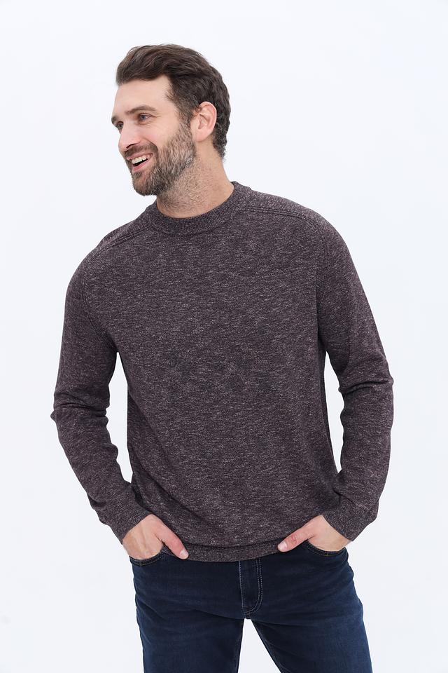 Джемпер имеет круглый вырез горловины и классический крой, обеспечивающий свободу движений и комфорт в носке. Текстура ткани с эффектом меланжа придает изделию особый шарм и визуальный интерес.