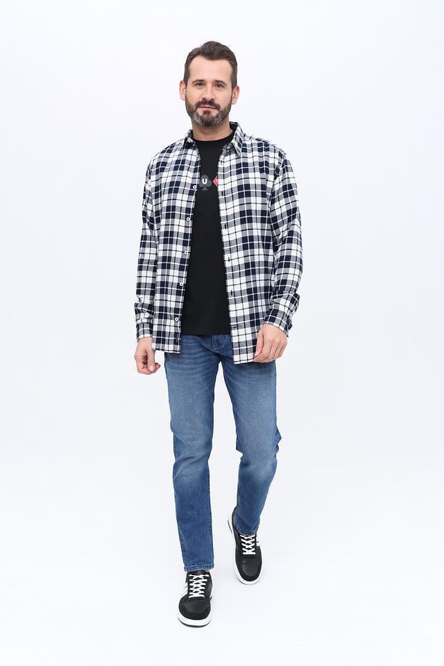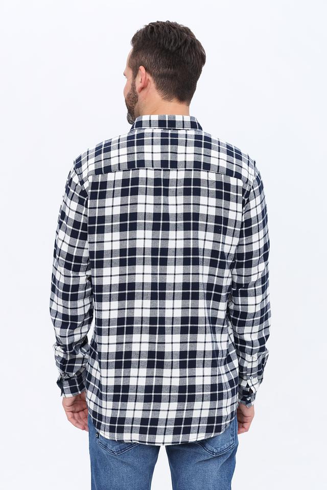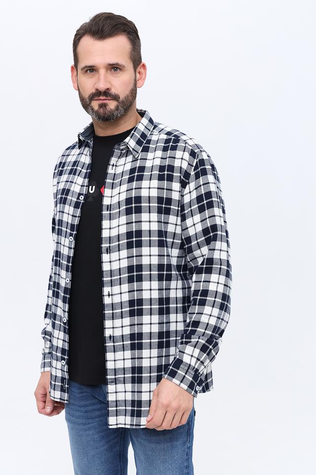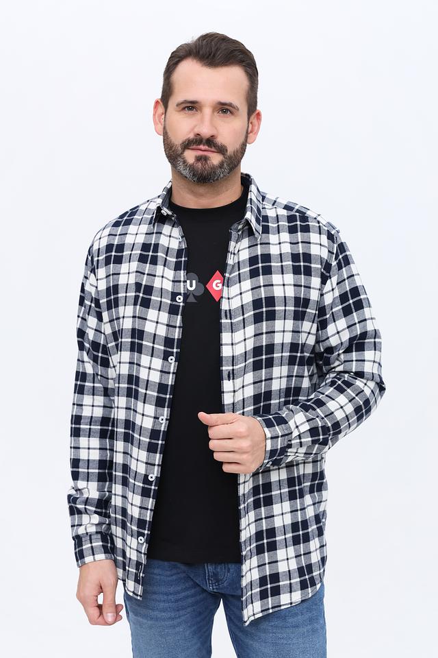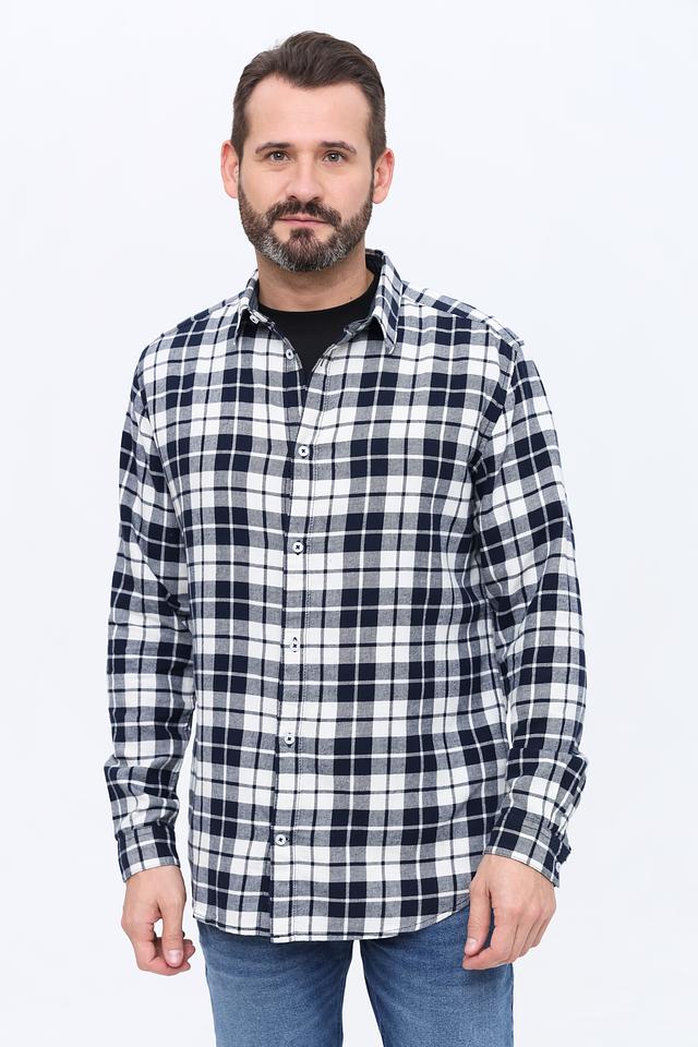 Основной цвет рубашки – синий, дополненный белым узором в клетку. Это сочетание делает рубашку универсальной и подходящей для различных образов. Рубашка выполнена из 100% хлопка, что обеспечивает приятные тактильные ощущения и хорошую воздухопроницаемость.