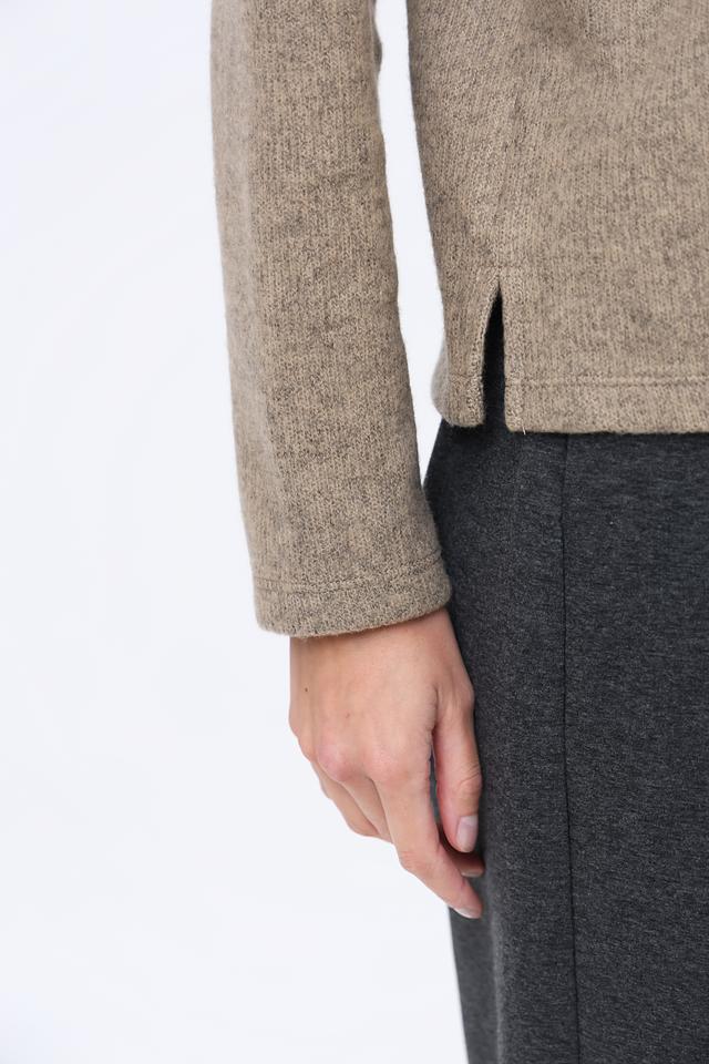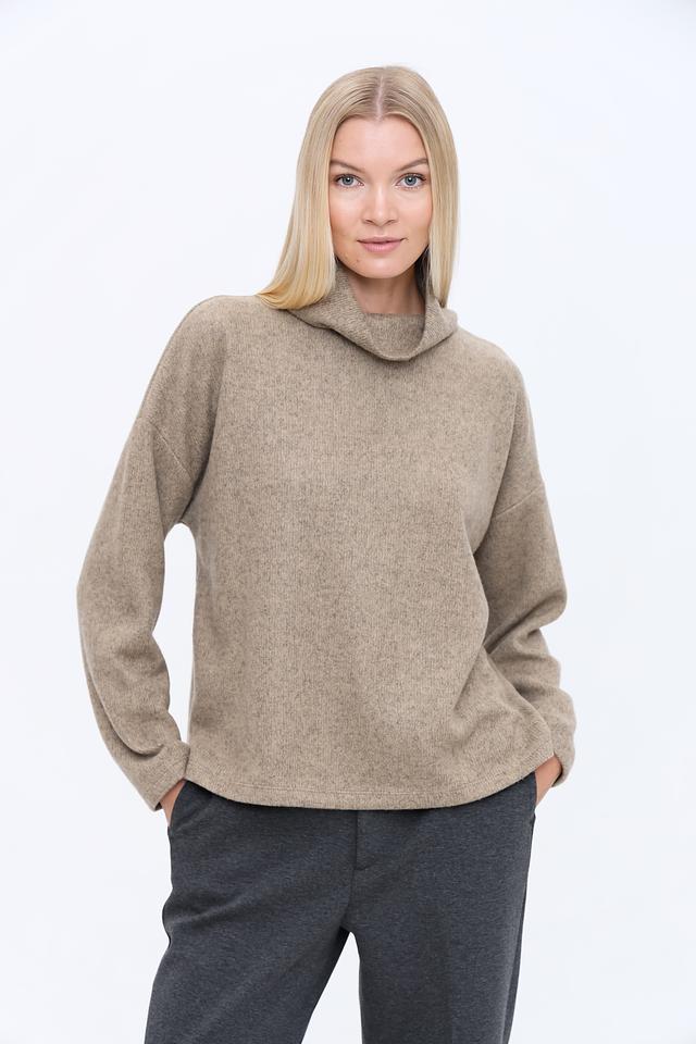 Состав пуловера включает 71% полиэстер, 28% вискозу и 1% эластан, что обеспечивает мягкость, приятные тактильные ощущения и хорошую посадку по фигуре. Этот пуловер легко сочетается с различными элементами одежды, от джинсов до юбок, и подходит для создания как повседневных, так и более формальных образов.