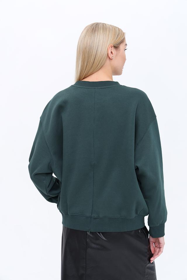 Модель имеет свободный крой, круглый вырез горловины и длинные рукава с манжетами. Толстовка изготовлена из высококачественного хлопка (79%) с добавлением полиэстера (21%), что обеспечивает мягкость, комфорт и износостойкость.