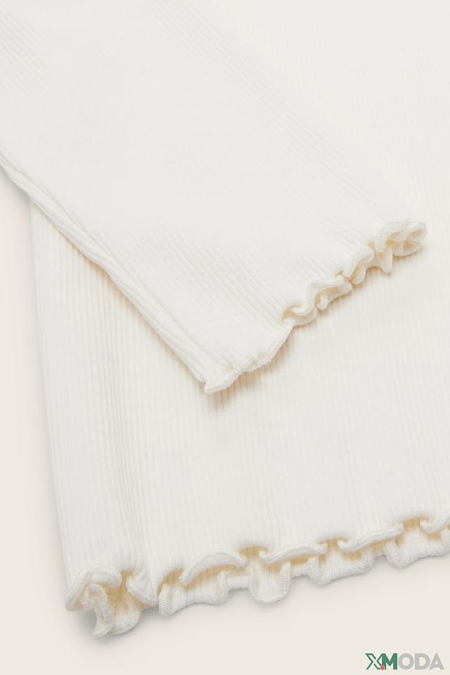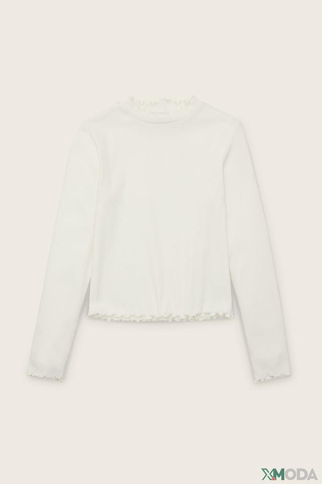 Белый цвет модели универсален и легко сочетается с другой одеждой. Декоративные рюши на горловине и по низу изделия придают лонгсливу особый шарм и изысканность.