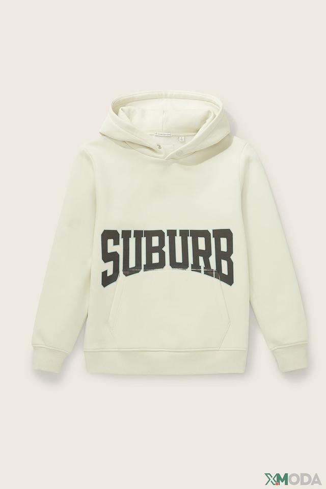 Бежевый свитшот от Tom Tailor с надписью "SUBURB" — удобная и стильная модель для мальчиков. Изготовлен из мягкого хлопка с добавлением полиэстера, обеспечивающего износостойкость. Состав: хлопок 60%, полиэстер 40%