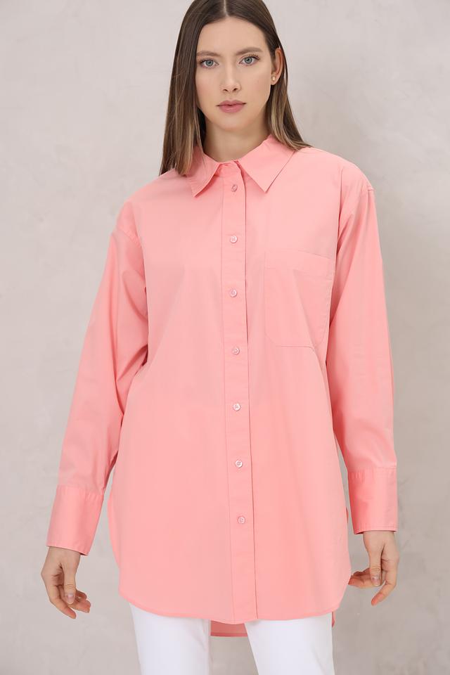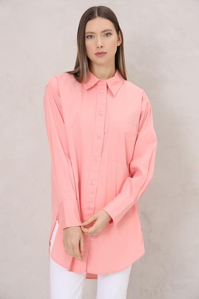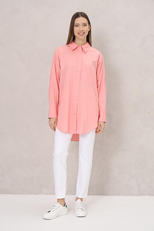 Рубашка имеет классический отложной воротник, застежку на пуговицы по всей длине и длинные рукава с манжетами на пуговицах. На груди расположен накладной карман, добавляющий функциональности и стиля.