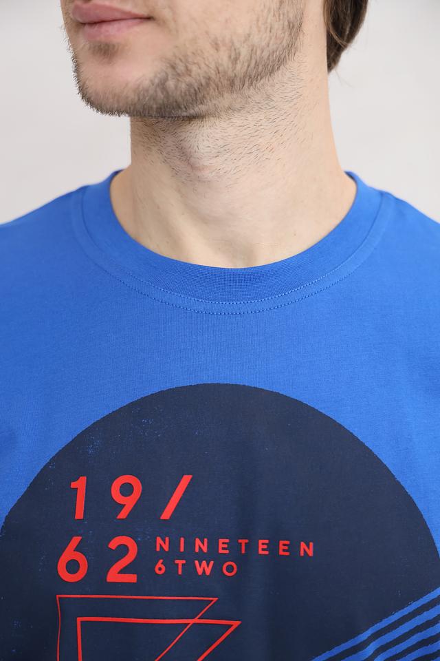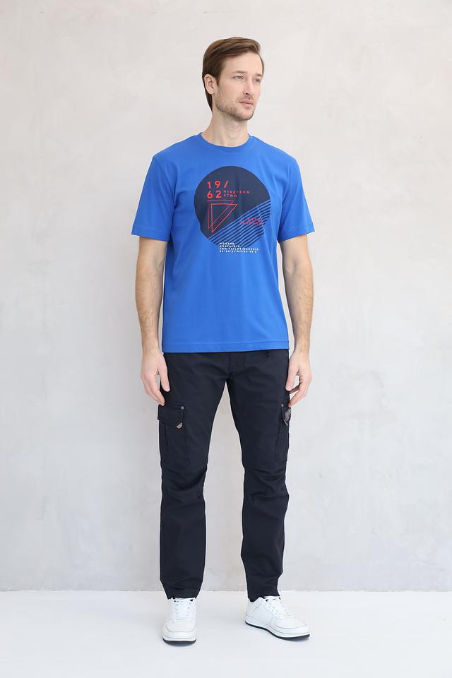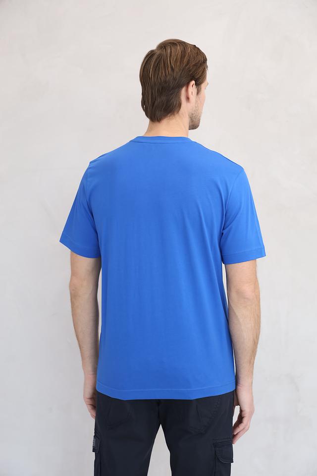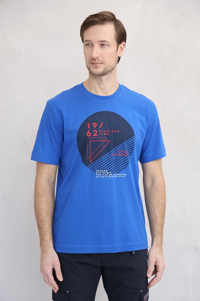 Синяя футболка Tom Tailor с круглым вырезом и оригинальным графическим принтом. Изготовлена из 100% хлопка, обеспечивающего комфорт и воздухопроницаемость. Стильный и удобный выбор для повседневного образа. Состав: хлопок 100%