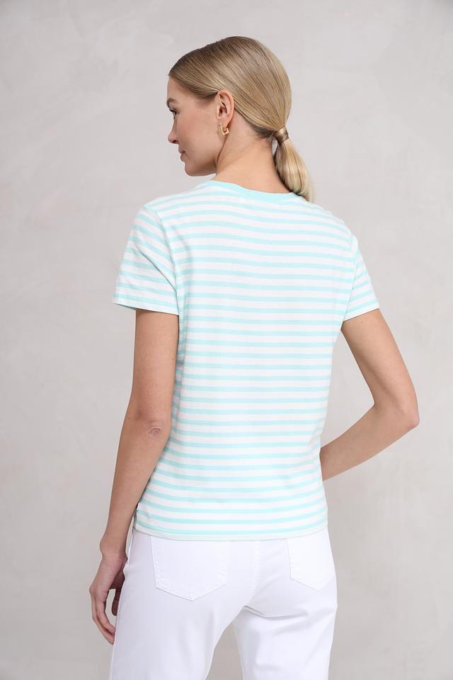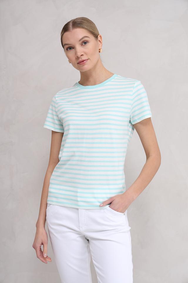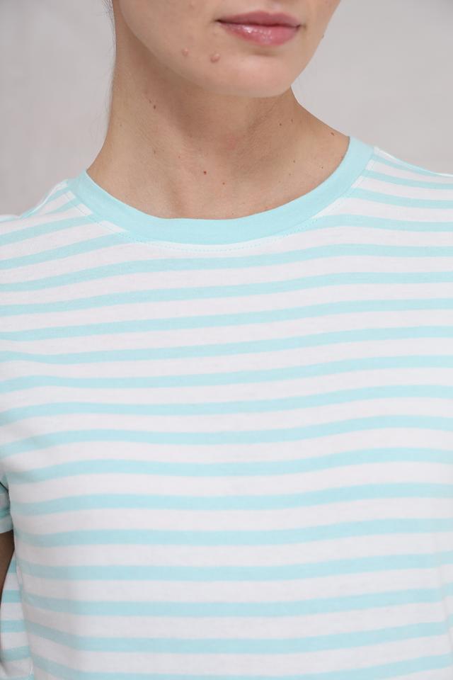 Женская футболка Tom Tailor голубого цвета с классическим полосатым дизайном. Изготовлена из 100% хлопка, обеспечивающего комфорт и воздухопроницаемость. Отличный выбор для повседневного образа. Состав: хлопок 100%
