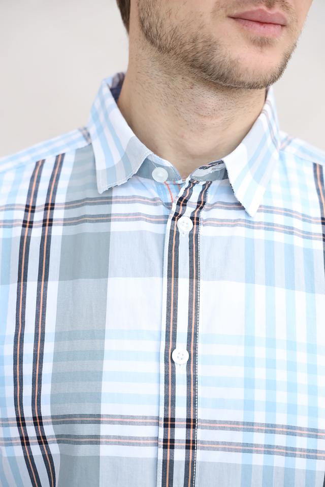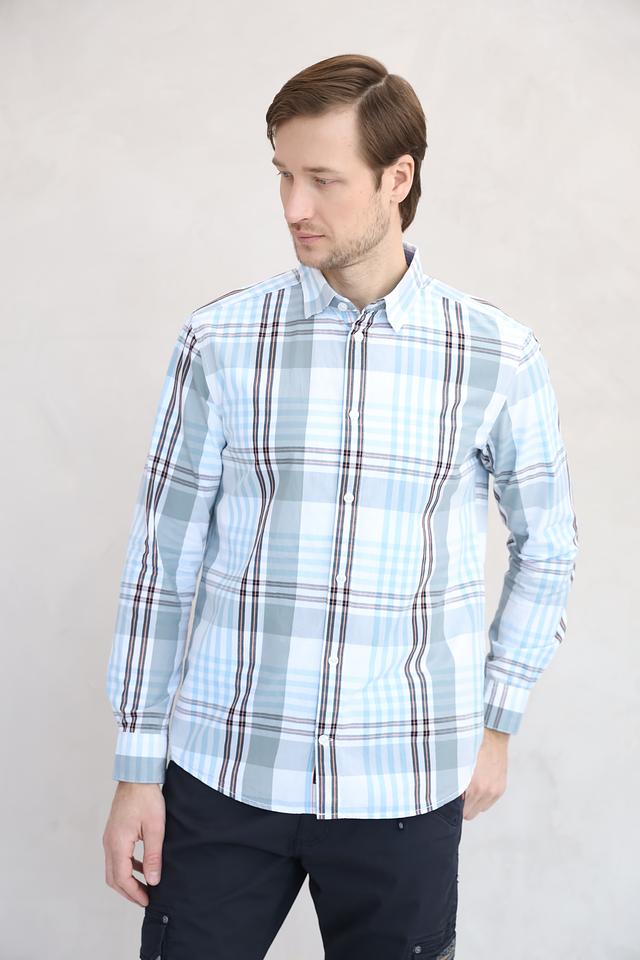 Мужская рубашка Tom Tailor голубого цвета в классическую клетку – стильное и универсальное решение для создания повседневных образов. Изготовлена из 100% хлопка, обеспечивающего комфорт и воздухопроницаемость. Состав: хлопок 100%