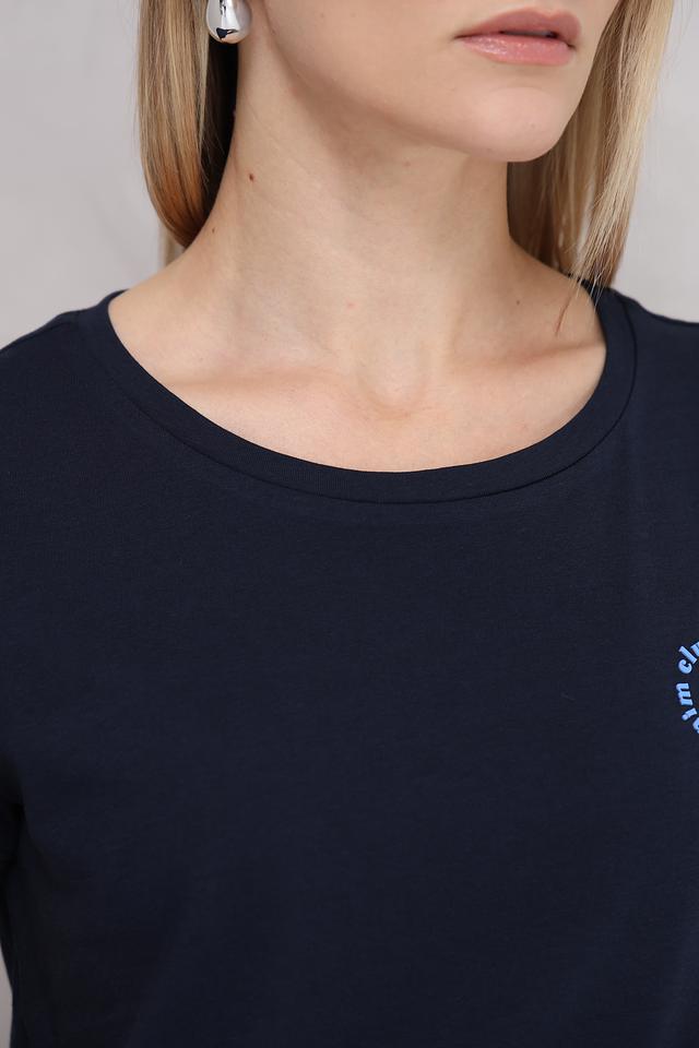 Благодаря своему лаконичному дизайну и насыщенному синему цвету, эта футболка легко сочетается с джинсами, шортами или юбками.