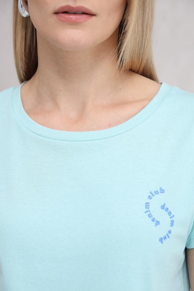 Особенностью данной модели является вышивка "denim club" на груди, которая придает ей стильный и современный вид. Мятный цвет футболки освежает образ и легко сочетается с другими элементами одежды.