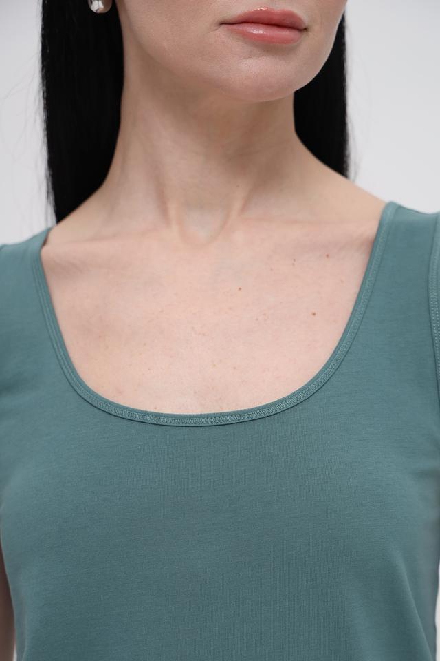 Топ имеет классический крой с округлым вырезом горловины и широкими бретелями. Благодаря составу – 95% хлопок и 5% эластан – изделие приятно к телу, хорошо держит форму и не сковывает движения.