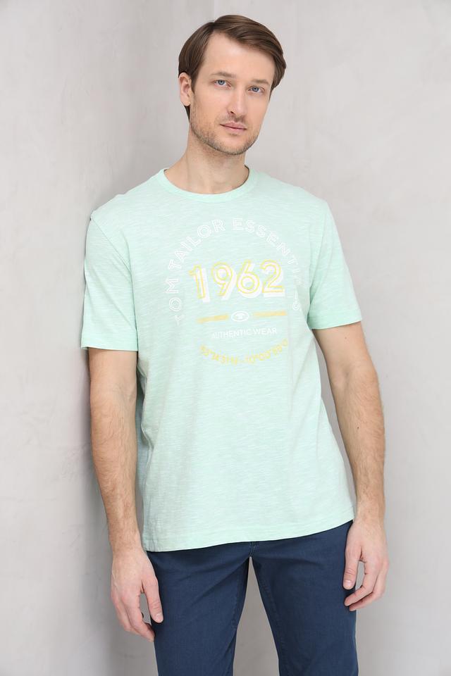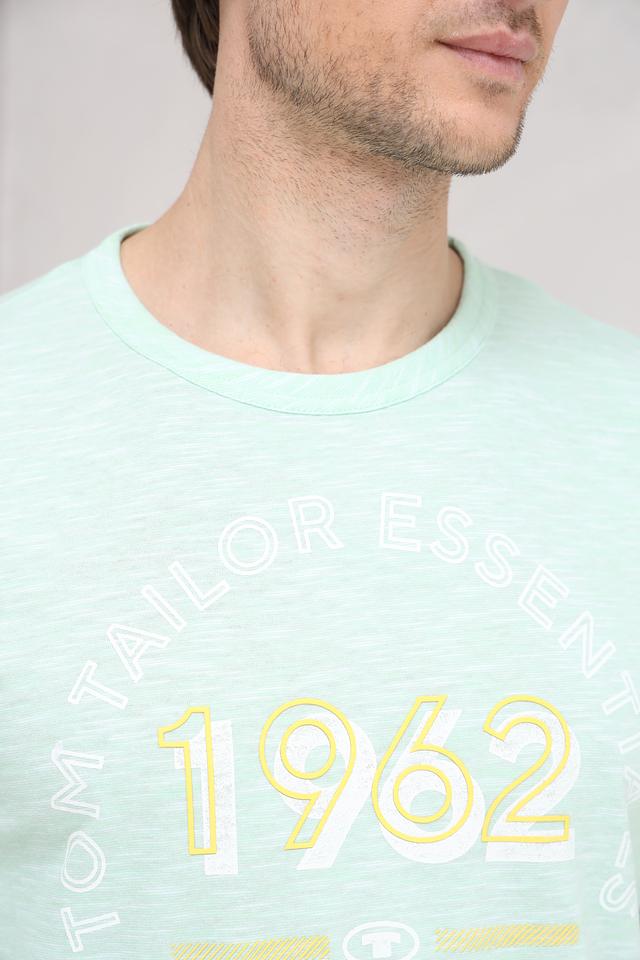 Мятная футболка Tom Tailor с круглым вырезом и оригинальным принтом в винтажном стиле. Изготовлена из 100% хлопка, обеспечивающего комфорт и воздухопроницаемость. Состав: хлопок 100%