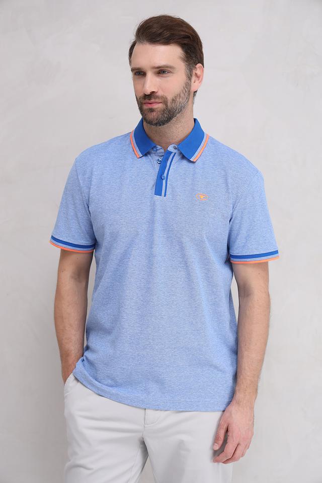 Мужское поло от Tom Tailor голубого цвета с контрастной отделкой воротника и планки. Изготовлено из мягкого хлопка с добавлением эластана для комфорта и свободы движений. Состав: хлопок 98%, эластан 2%