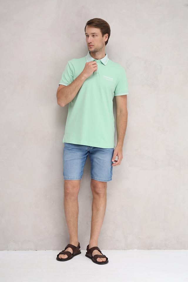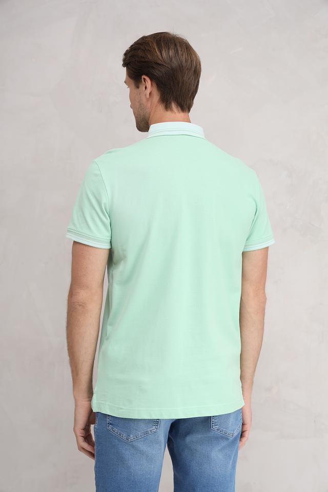Цвет поло – нежный мятный, который отлично сочетается с различными оттенками денима и другими цветами. Такая рубашка поло станет отличным выбором для повседневной носки и создания стильных образов.