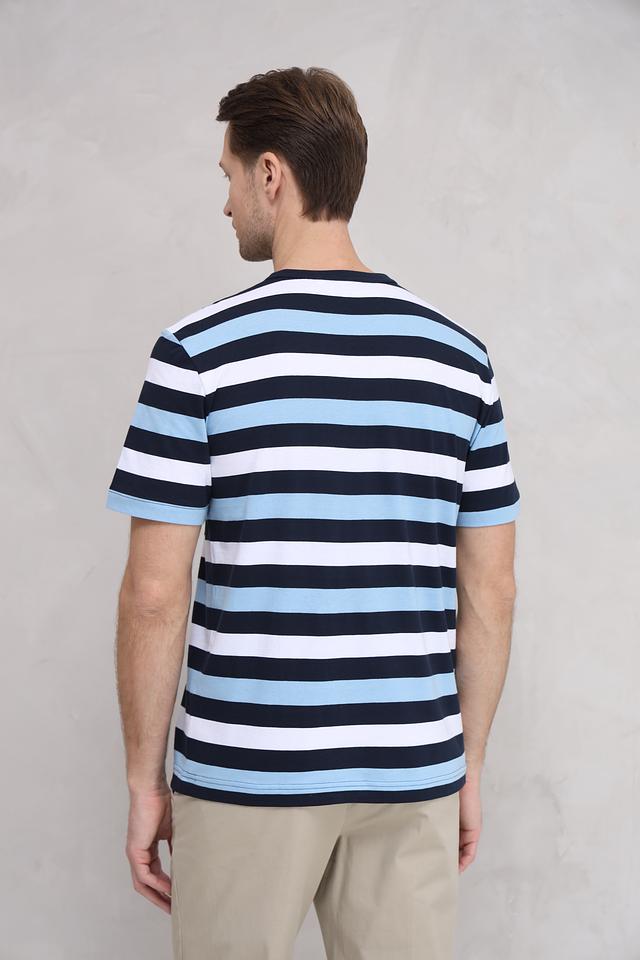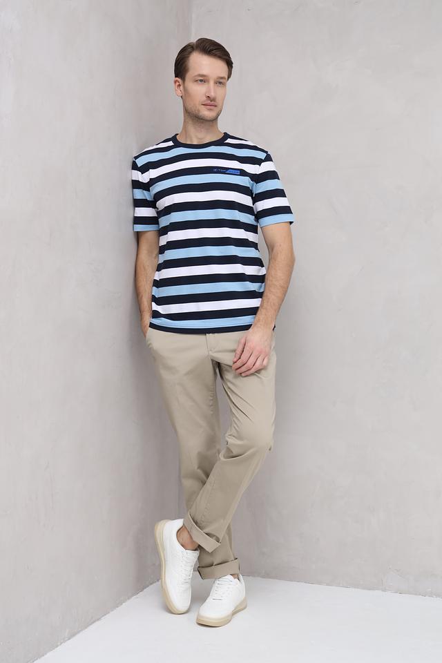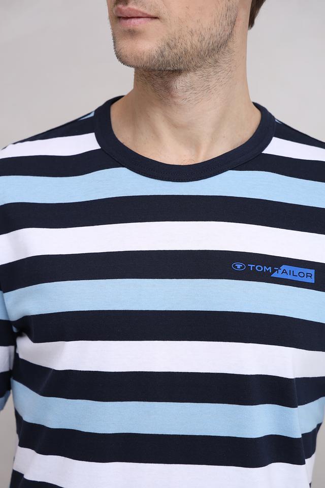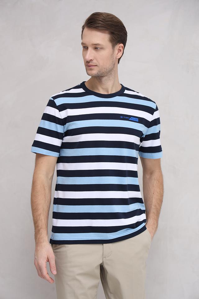 Мужская футболка Tom Tailor синего и белого цвета в классическую полоску. Изготовлена из 100% хлопка, обеспечивающего комфорт и воздухопроницаемость. Отличный выбор для повседневного образа. Состав: хлопок 100%