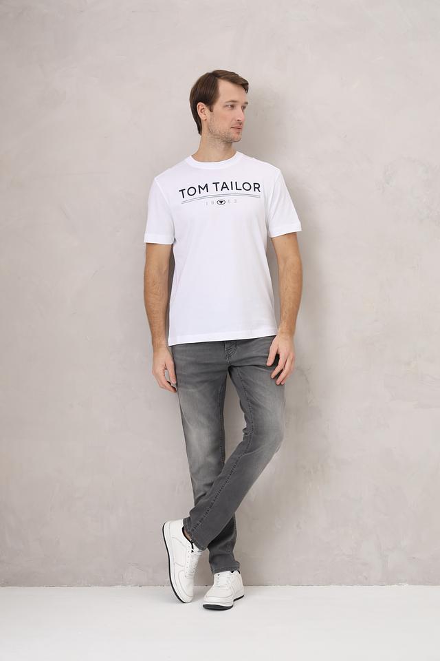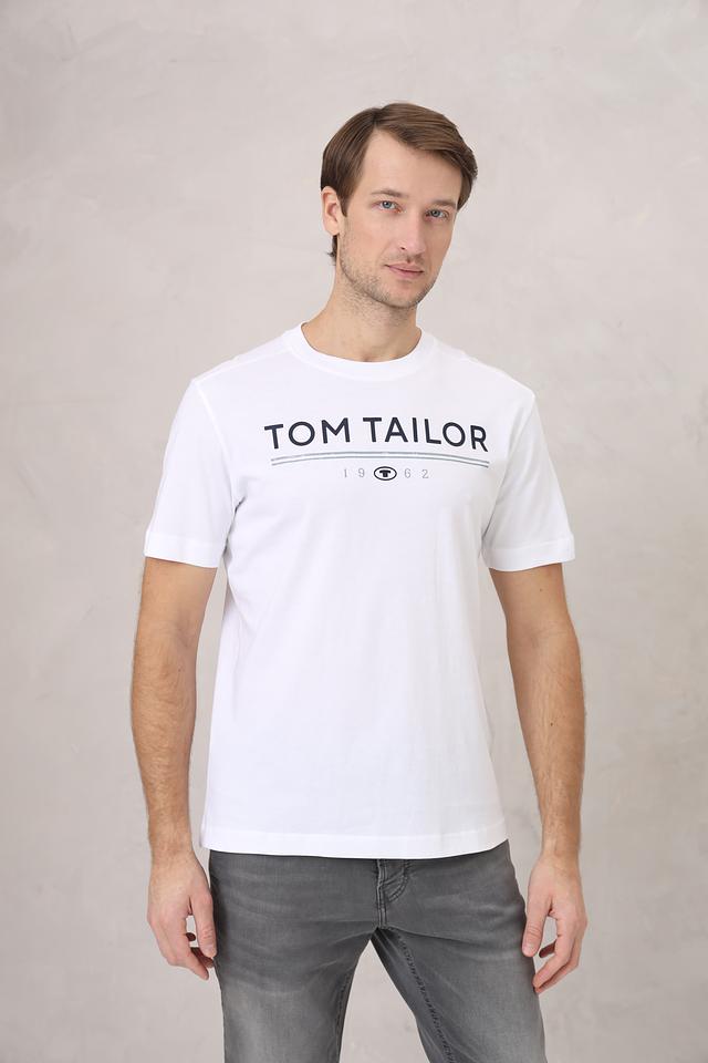 Дизайн футболки выполнен в минималистичном стиле: однотонный белый цвет и контрастный логотип бренда на груди. Логотип состоит из названия бренда "TOM TAILOR" и года основания "1962".