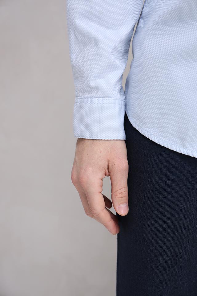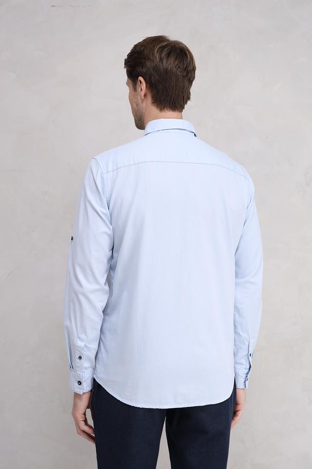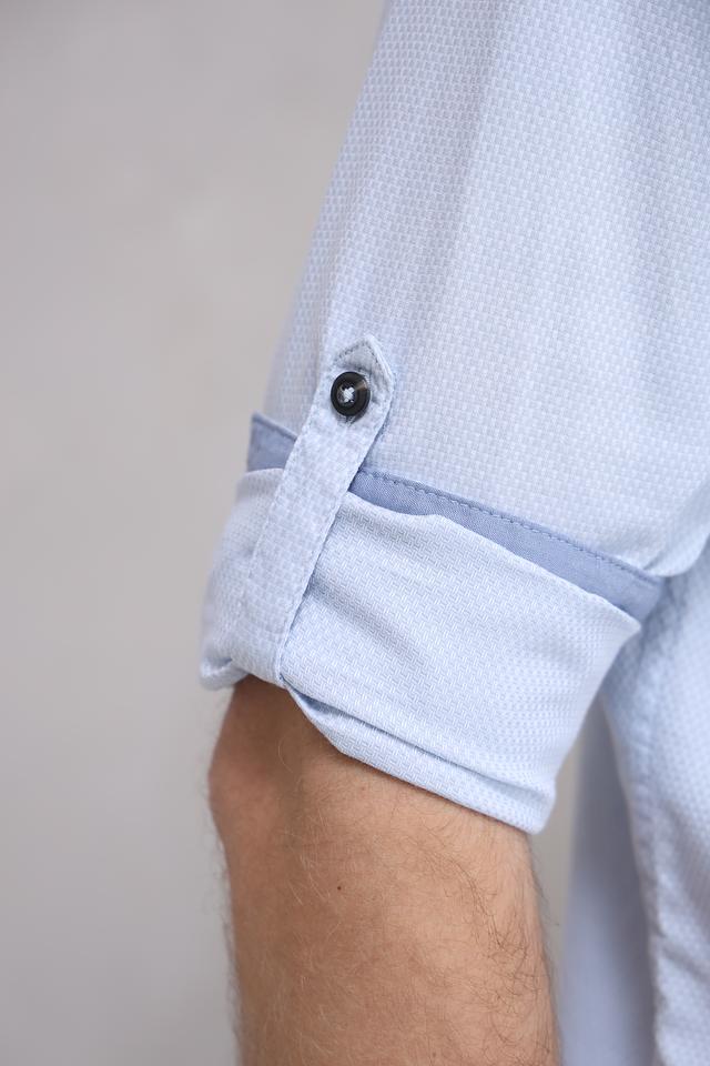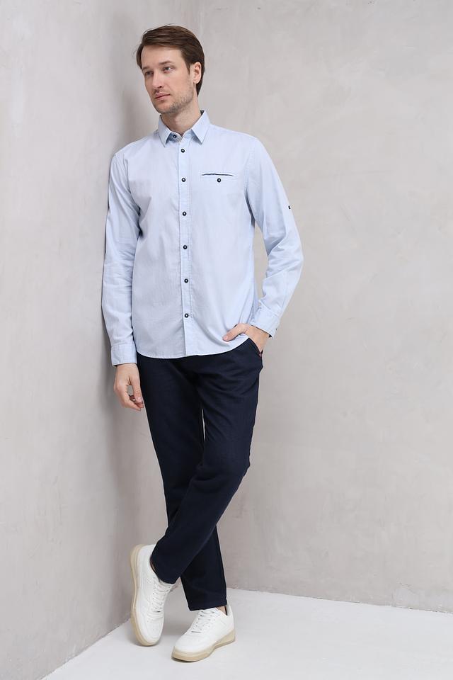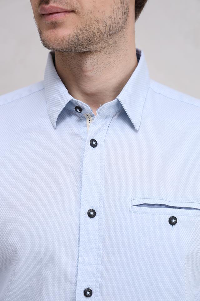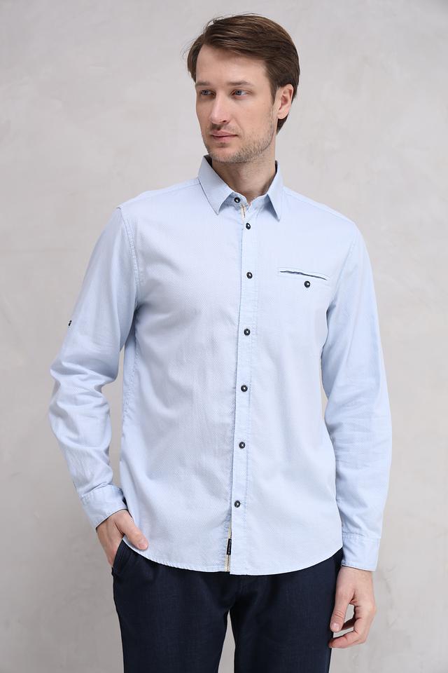 Нежный голубой цвет делает эту рубашку универсальной и легко сочетаемой с другими элементами одежды. Она идеально подходит для повседневной носки, а также для более формальных мероприятий.