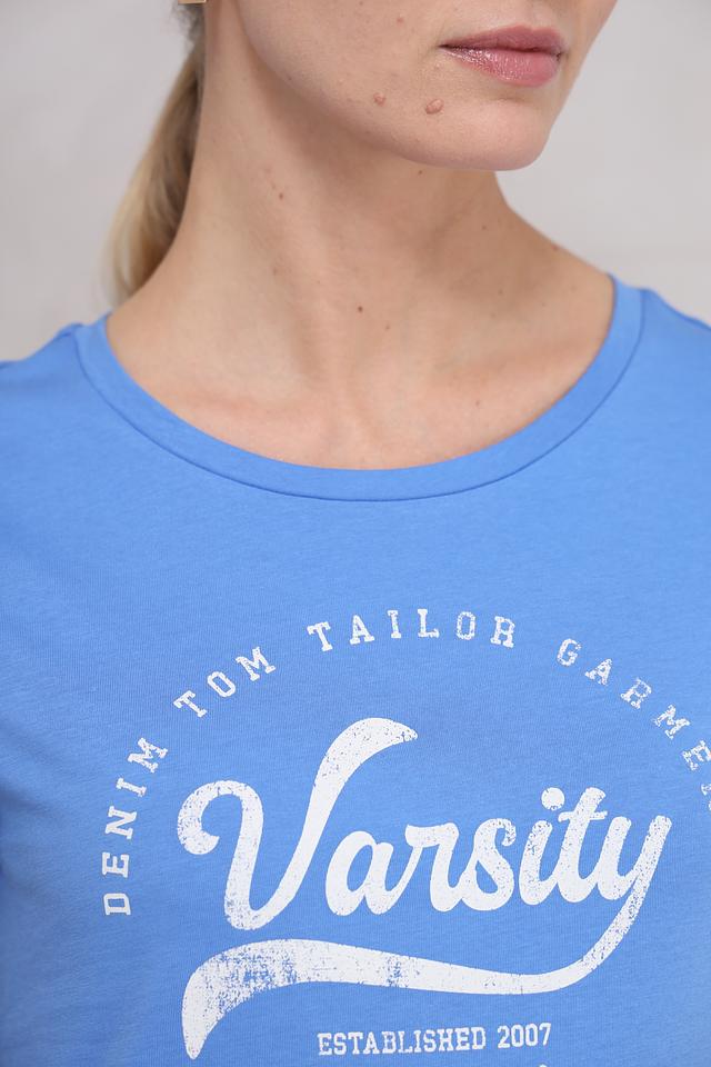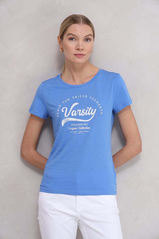 Женская футболка Tom Tailor голубого цвета с принтом Varsity — это стильная и комфортная модель из 100% хлопка. Футболка имеет круглый вырез горловины и короткие рукава, идеально подходит для повседневной носки. Состав: хлопок 100%