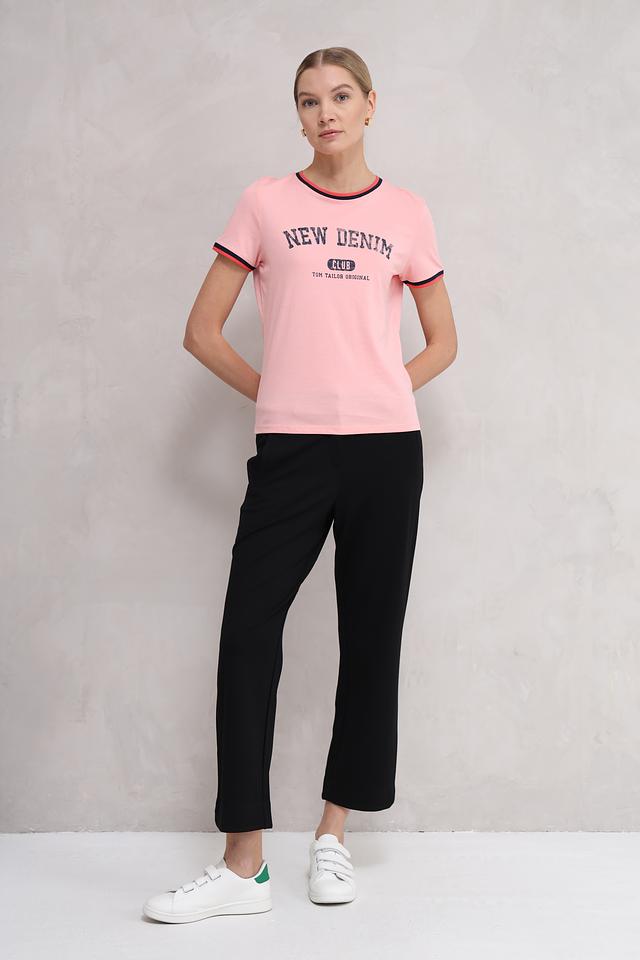 Розовая футболка Tom Tailor denim с принтом "NEW DENIM CLUB" и отделкой кантом. Изготовлена из 100% хлопка, обеспечивая комфорт и воздухопроницаемость. Стильный и удобный вариант для повседневного образа. Состав: хлопок 100%