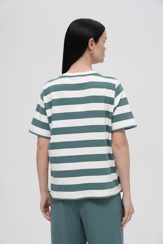 Женская футболка Tom Tailor зеленого и белого цвета в классическую полоску. Изготовлена из 100% хлопка, обеспечивающего комфорт и воздухопроницаемость. Стильная и универсальная модель для повседневного образа. Состав: хлопок 100%