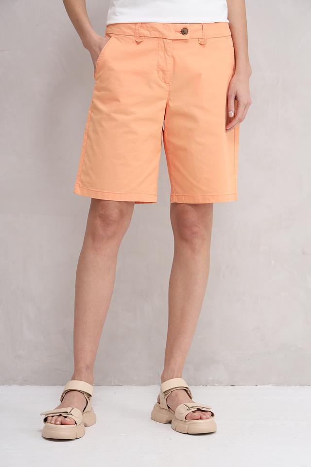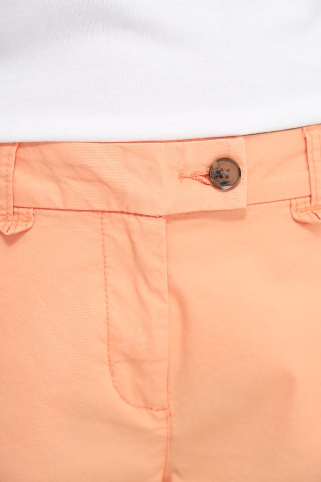 Персиковый цвет шорт придаёт им свежий и летний вид. Они прекрасно сочетаются с различными топами, футболками и блузками, позволяя создавать разнообразные образы для повседневной носки. Состав ткани: 86% хлопок, 11% эластомультиэстер, 3% эластан.