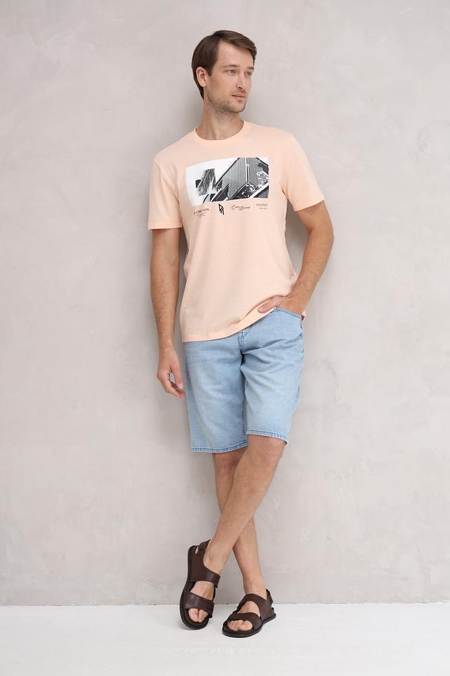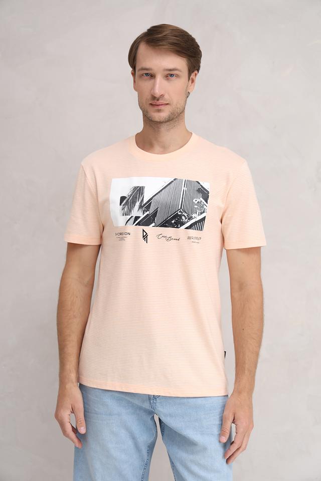 Мужская футболка Tom Tailor персикового цвета с ярким графическим принтом. Изготовлена из мягкого хлопка с добавлением полиэстера для комфорта и долговечности. Отличный выбор для повседневного образа. Состав: хлопок 70%, полиэстер 30%
