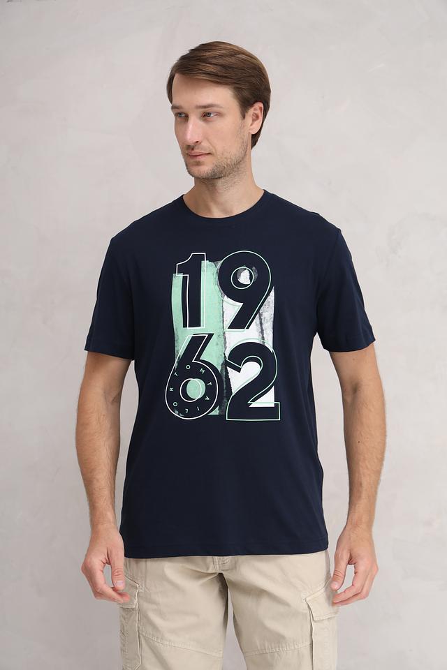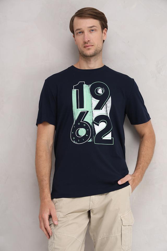 Мужская футболка Tom Tailor темно-синего цвета с ярким принтом "1962". Изготовлена из 100% хлопка, обеспечивая комфорт и воздухопроницаемость. Стильный дизайн и качественный материал делают эту футболку отличным выбором для повседневной носки. Состав: хлопок 100%