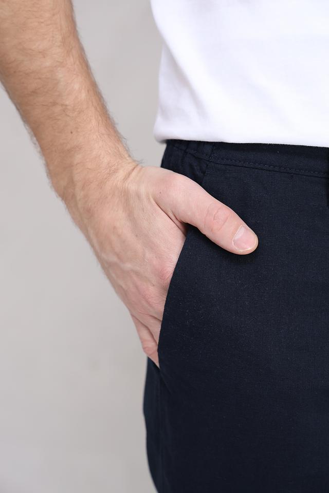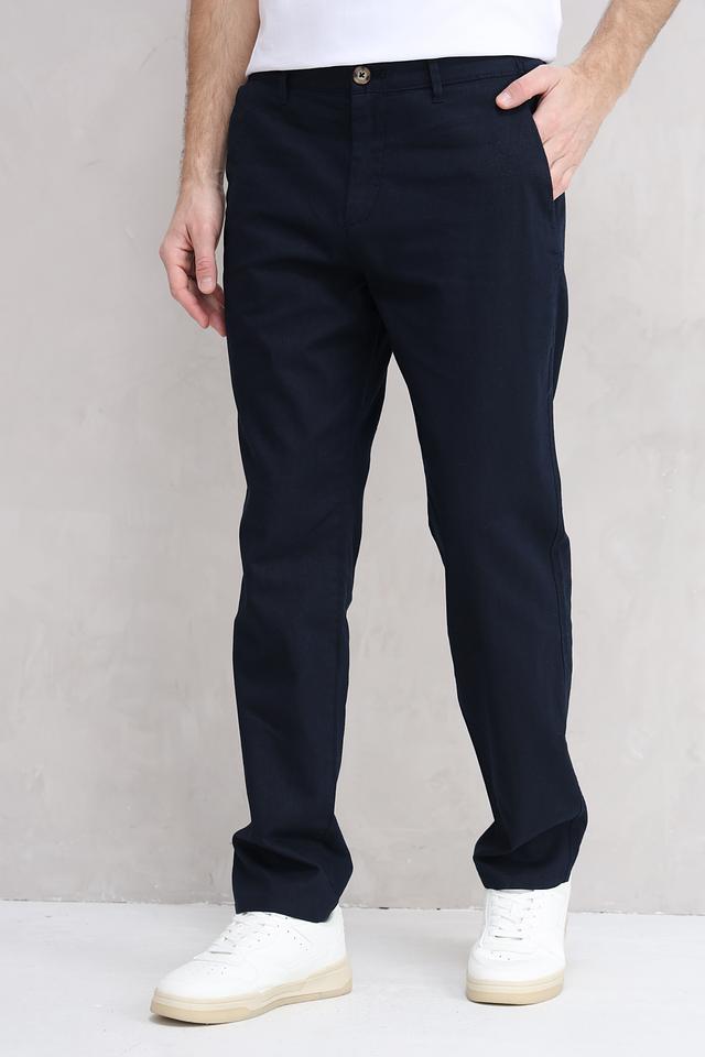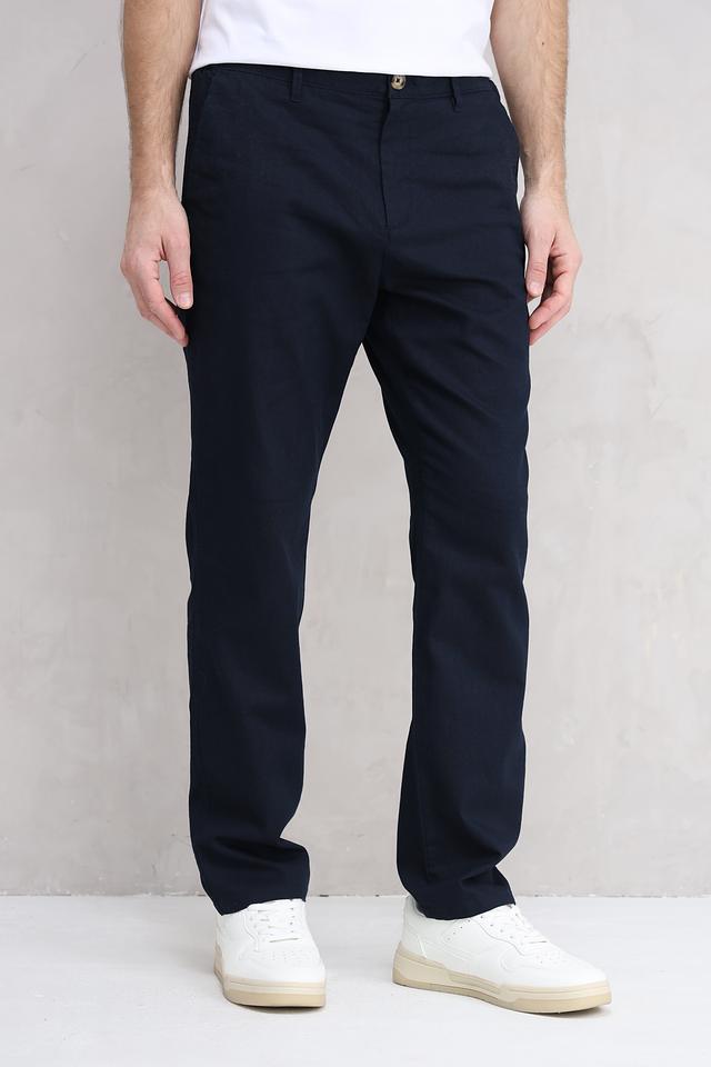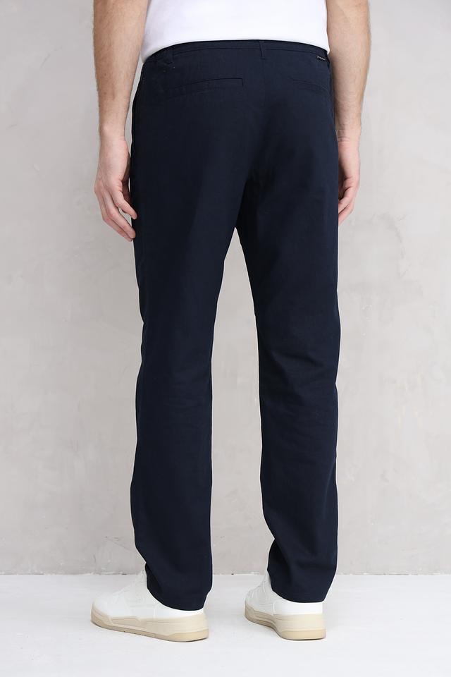 Мужские брюки от Tom Tailor классического кроя, выполнены в темно-синем цвете. Модель отличается лаконичным дизайном и универсальностью, подходящей для создания различных образов. Состав: лен 55%, хлопок 45%