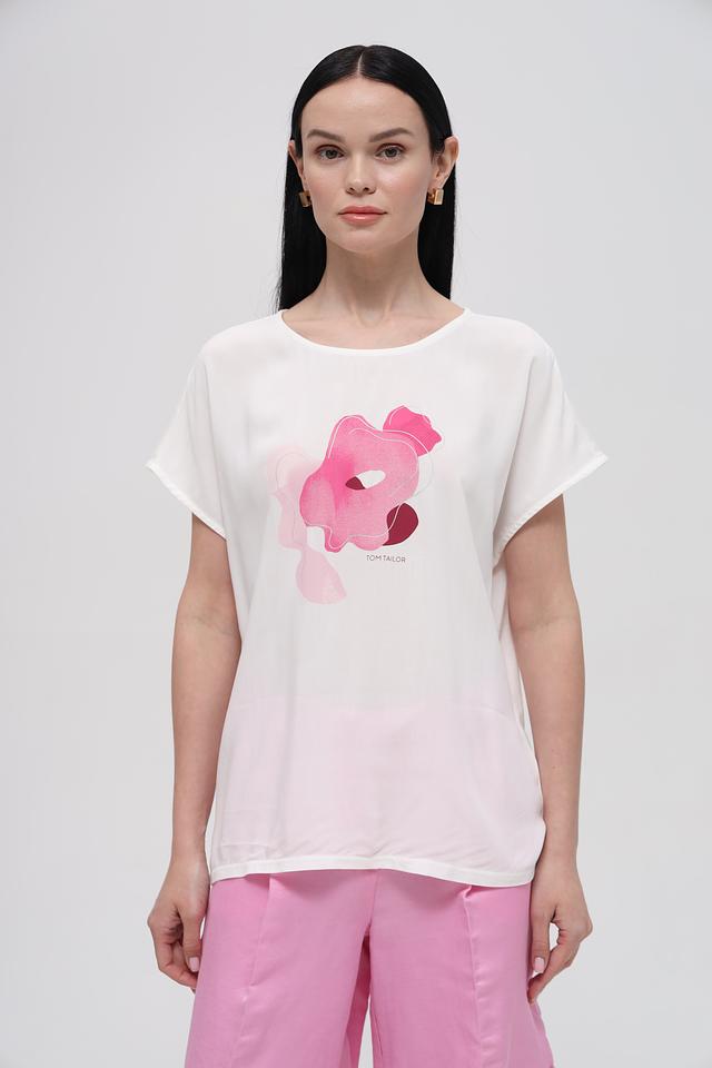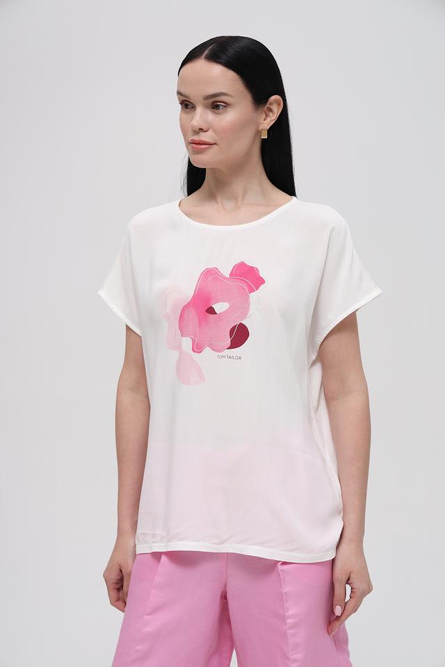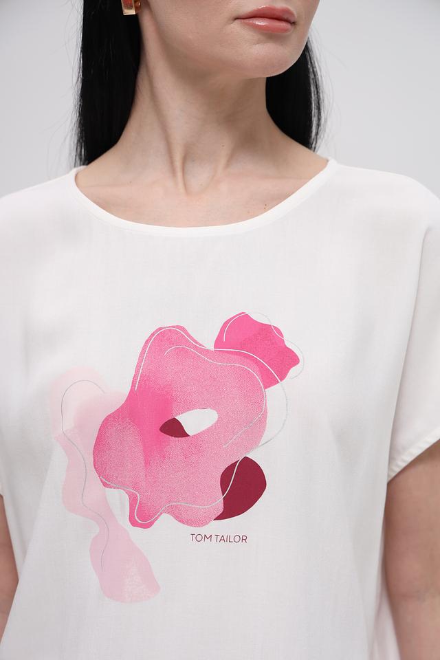 Женская футболка Tom Tailor белого цвета с ярким цветочным принтом – стильное и комфортное решение для повседневного образа. Изготовлена из мягкого хлопка с модалом, обеспечивающего приятные ощущения на коже. Состав: хлопок 50%, модал 50%