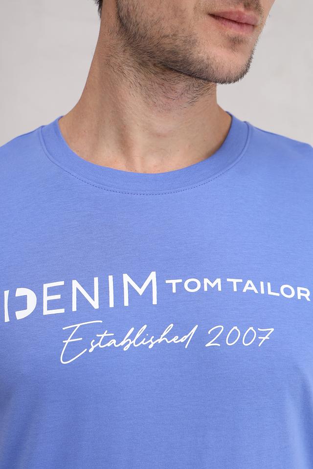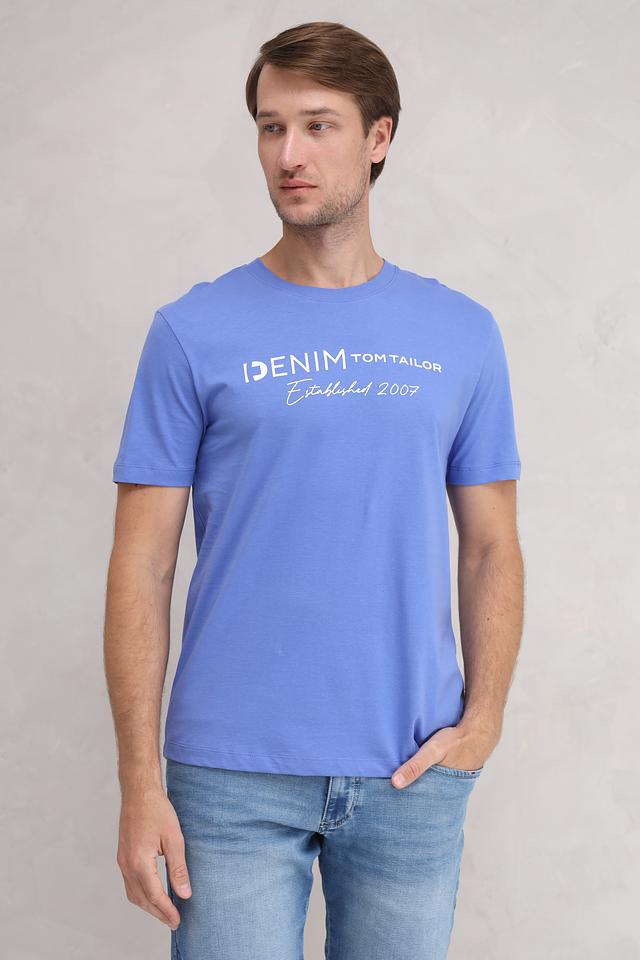 Футболка имеет классический прямой крой, который подходит для любой фигуры. Короткие рукава делают ее идеальным выбором для теплой погоды. На груди расположен логотип бренда "DENIM Tom Tailor Established 2007", выполненный в белом цвете, что придает футболке стильный и узнаваемый вид.