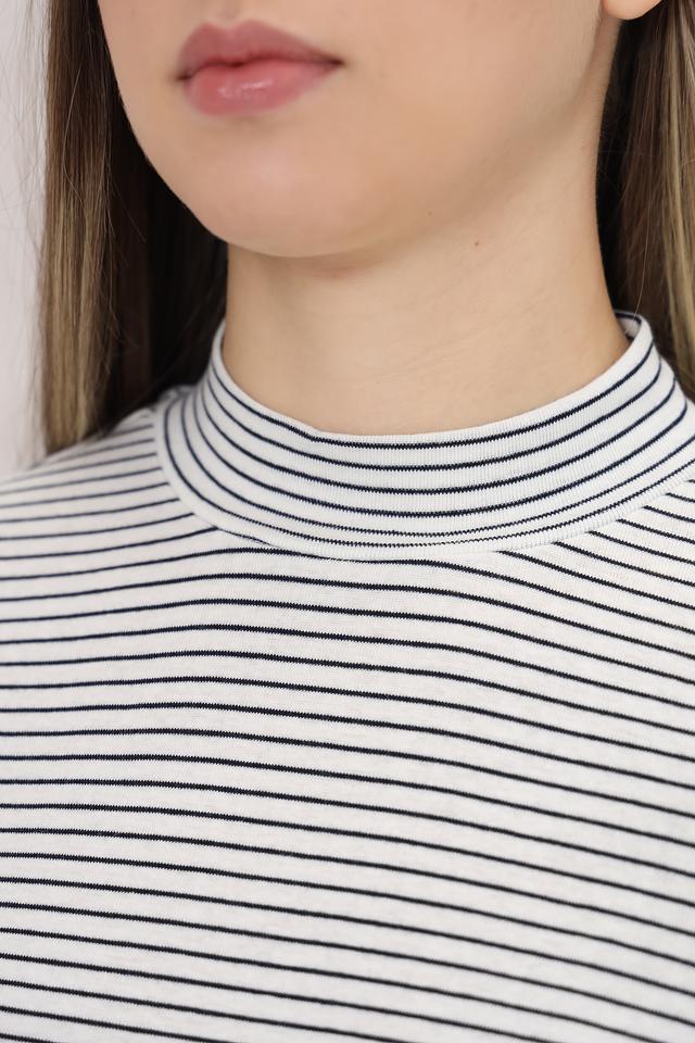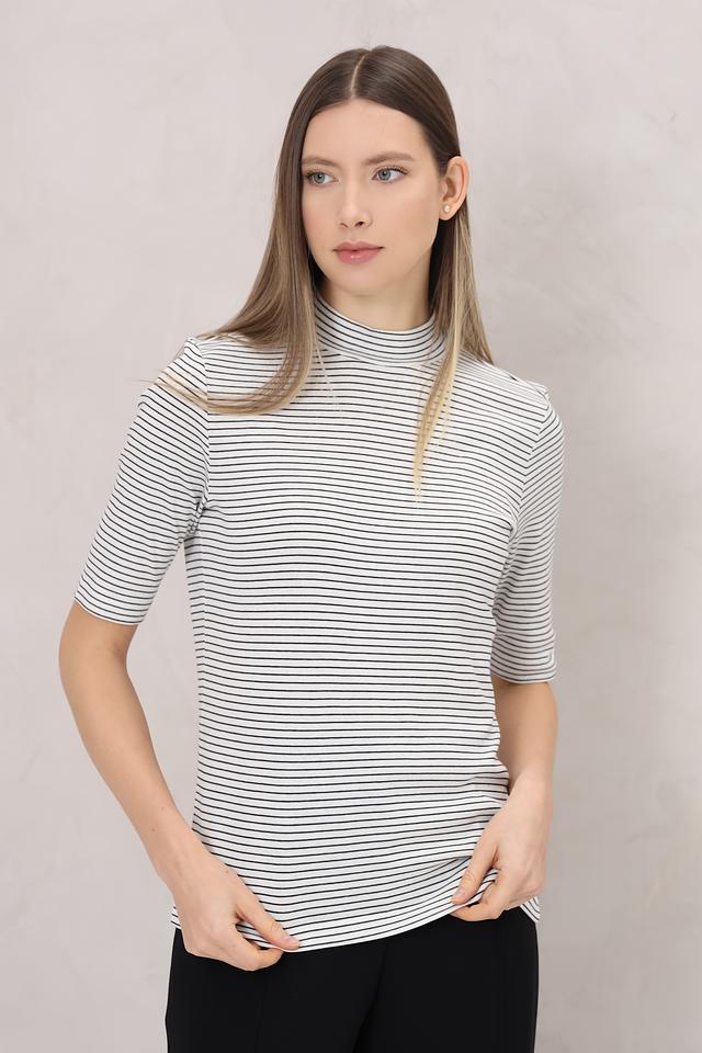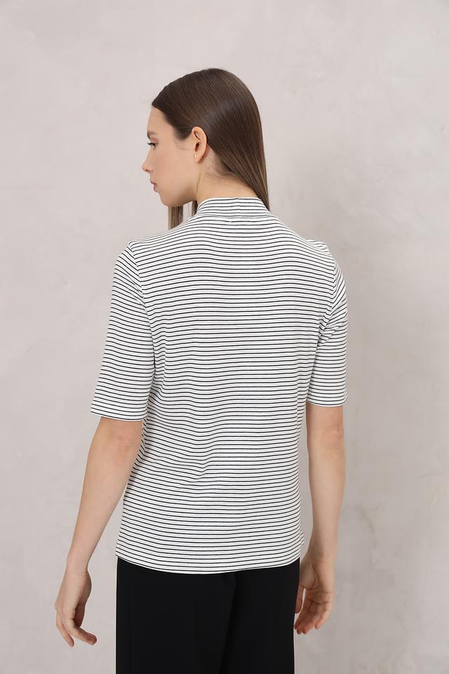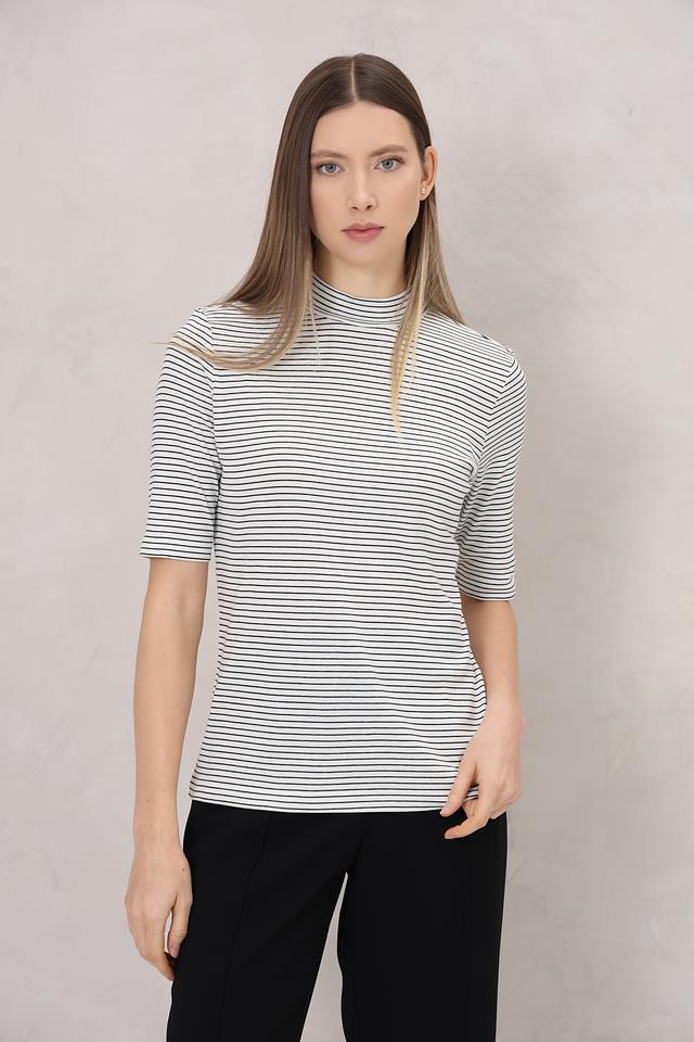 Женская футболка Tom Tailor выполнена в классическую бело-синюю полоску. Модель с коротким рукавом и высоким воротом станет отличным дополнением к вашему гардеробу. Изготовлена из 100% хлопка. Состав: хлопок 100%