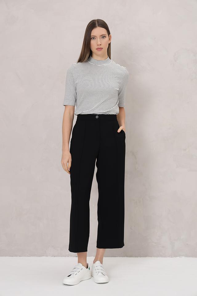 Модель выполнена из высококачественного 100% хлопка, что обеспечивает комфорт и приятные ощущения при носке. Высокий воротник добавляет изысканности и делает эту футболку подходящей для создания как повседневных, так и более элегантных образов.