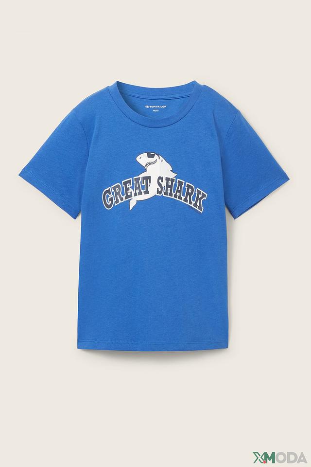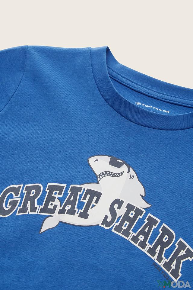 Синяя футболка Tom Tailor для мальчиков с ярким принтом акулы. Изготовлена из 100% хлопка, обеспечивая комфорт и удобство в носке. Отличный выбор для активных ребят! Состав: хлопок 100%