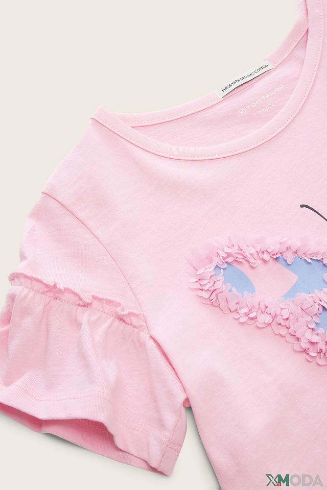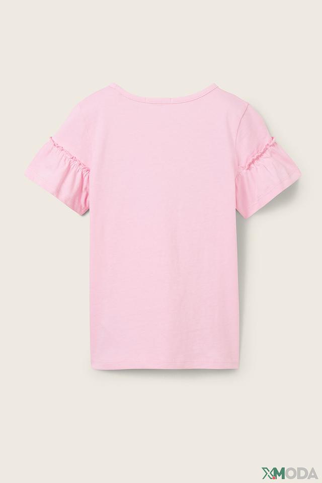 Розовая футболка Tom Tailor для девочки с ярким принтом бабочки. Модель выполнена из мягкого хлопка и дополнена милыми оборками на рукавах, что придает ей очаровательный вид. Состав: хлопок 100%