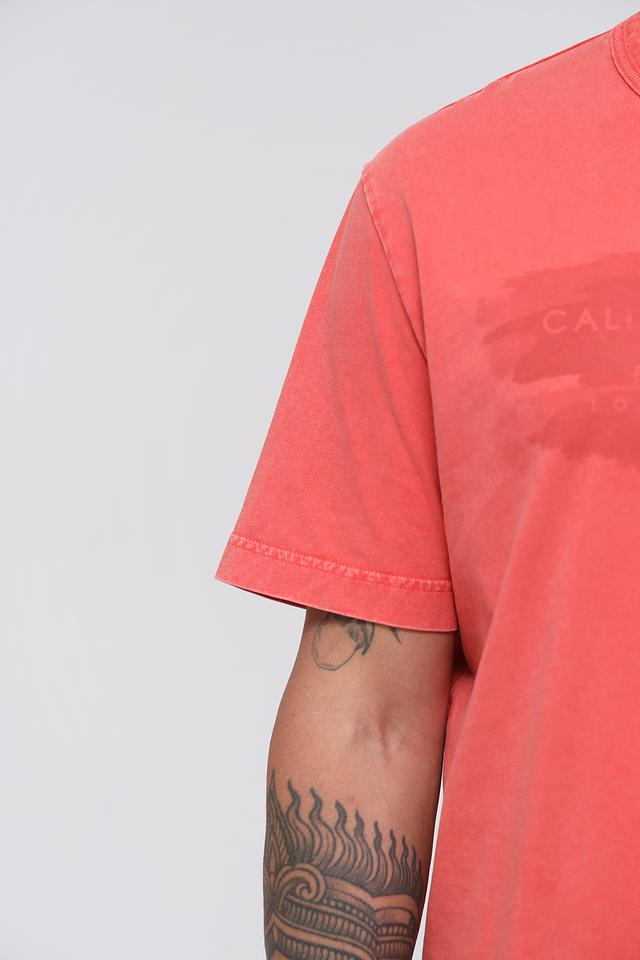 На передней части футболки расположен принт с надписью “CALI SUNDOWNER TROPICAL TIMES PACIFIC PARADISE” и логотипом бренда. Особую изюминку изделию придает эффект потертости, придающий ему винтажный вид.
