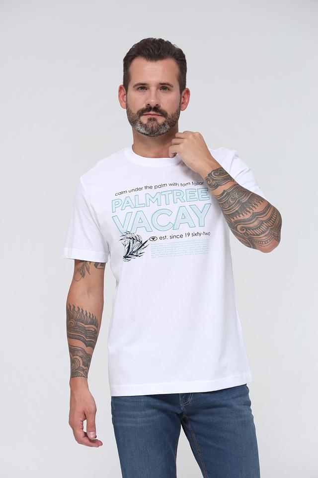 Белая футболка Tom Tailor с ярким принтом в стиле "vacay". Изготовлена из 100% хлопка, обеспечивая комфорт и воздухопроницаемость. Отличный выбор для создания непринужденного летнего образа. Состав: хлопок 100%