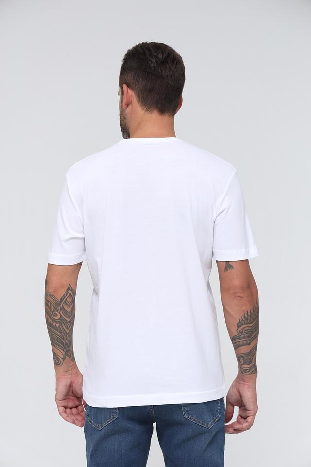 Модель имеет классический крой, короткие рукава и круглый вырез горловины. Футболка изготовлена из 100% хлопка, что обеспечивает комфорт при носке и позволяет коже дышать.