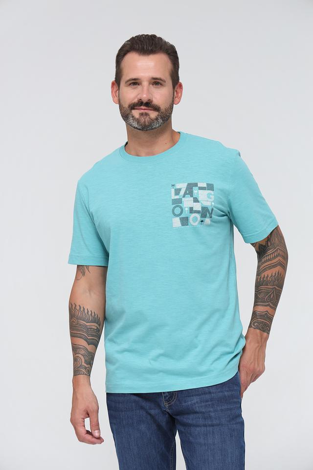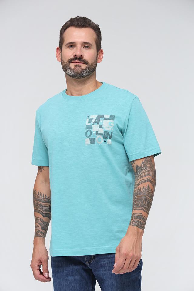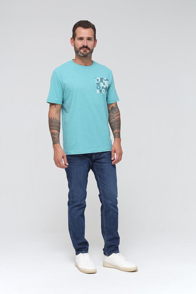 Мужская футболка Tom Tailor бирюзового цвета с оригинальным графическим принтом. Изготовлена из 100% хлопка, обеспечивающего комфорт и воздухопроницаемость. Отличный выбор для повседневного образа. Состав: хлопок 100%