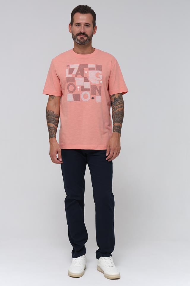 Мужская футболка Tom Tailor персикового цвета с оригинальным графичным принтом. Изготовлена из 100% хлопка, обеспечивающего комфорт и воздухопроницаемость. Стильный и удобный выбор для повседневной носки. Состав: хлопок 100%