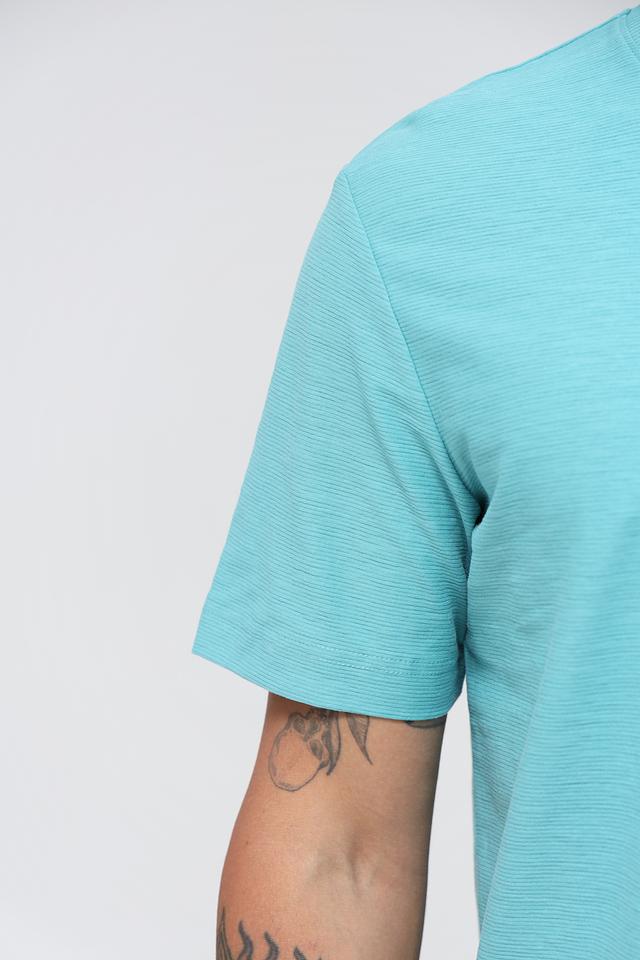 Бирюзовый цвет футболки освежает образ и легко сочетается с различными элементами одежды. Она идеально подходит для повседневной носки, а также для активного отдыха. Состав ткани обеспечивает воздухопроницаемость и приятные ощущения на коже.