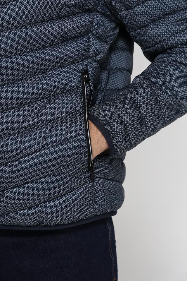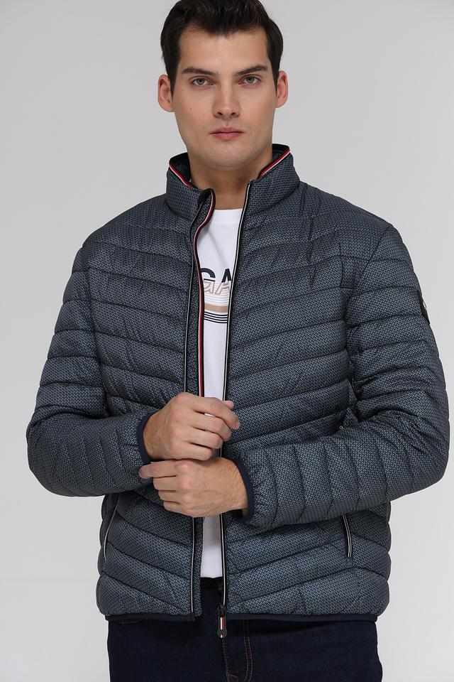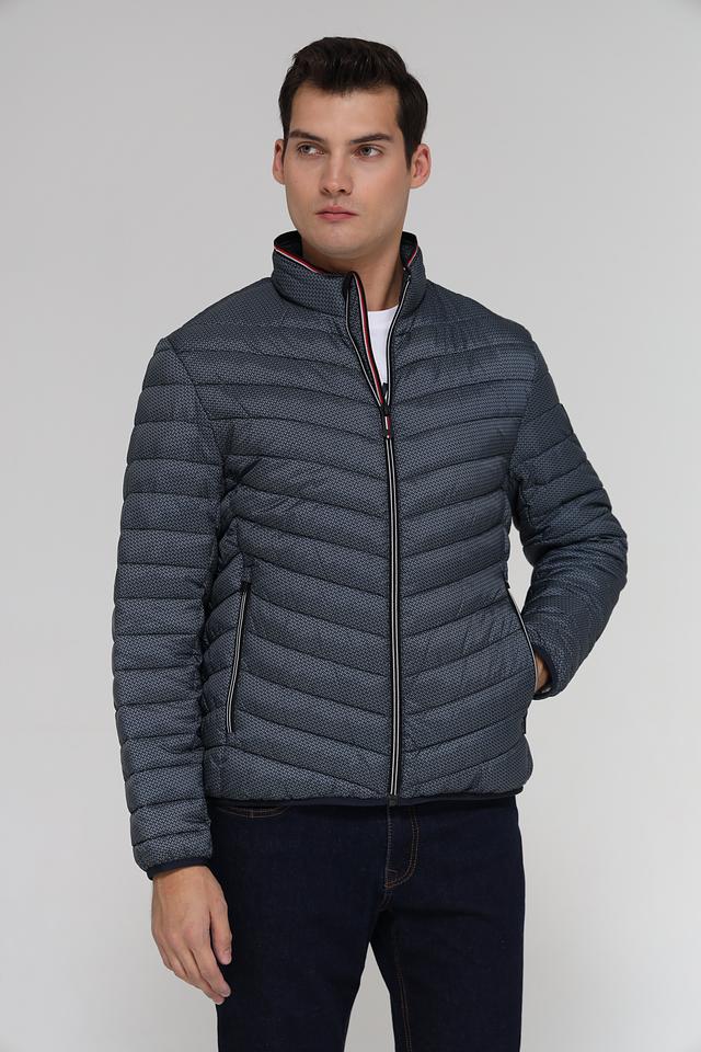 Мужская куртка от Tom Tailor выполнена в сером цвете с оригинальным геометрическим принтом. Куртка имеет стеганую фактуру, которая придает ей современный и стильный вид.