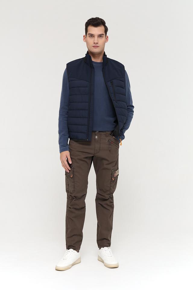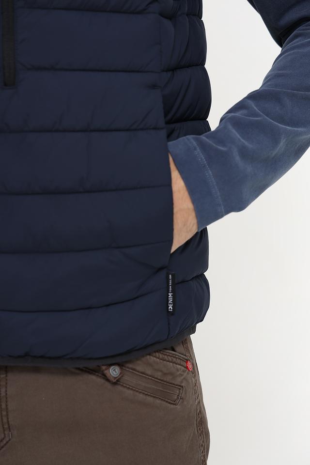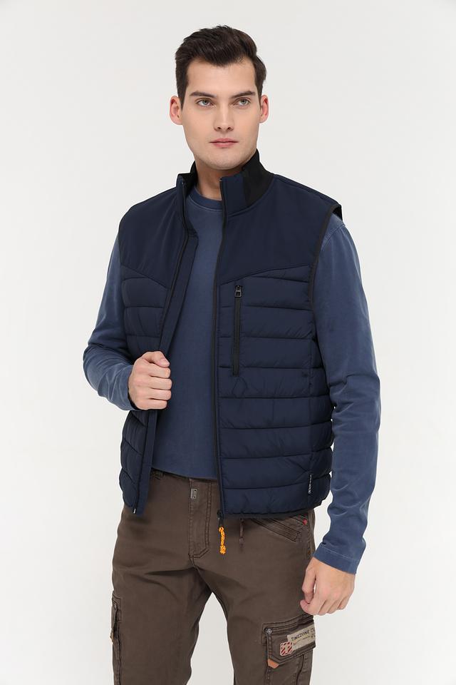 Модель оснащена двумя боковыми карманами на молнии, что позволяет безопасно хранить необходимые вещи. Сочетание синего цвета и черных вставок придает жилету современный и универсальный вид. Этот жилет станет прекрасным дополнением к вашему гардеробу и подойдет для повседневной носки.