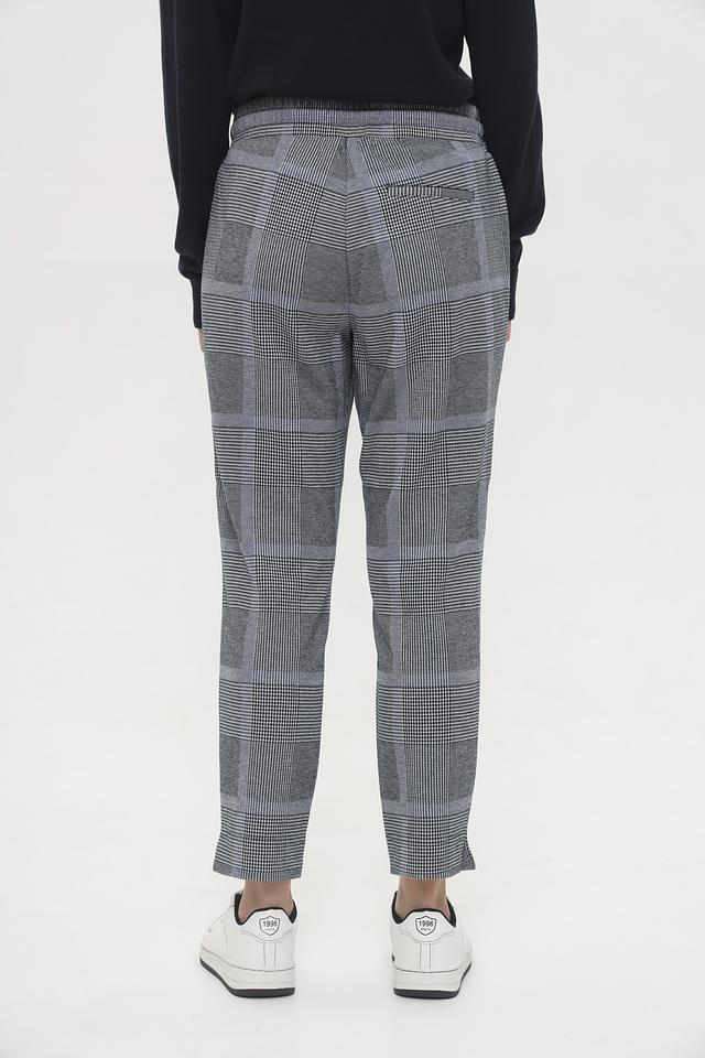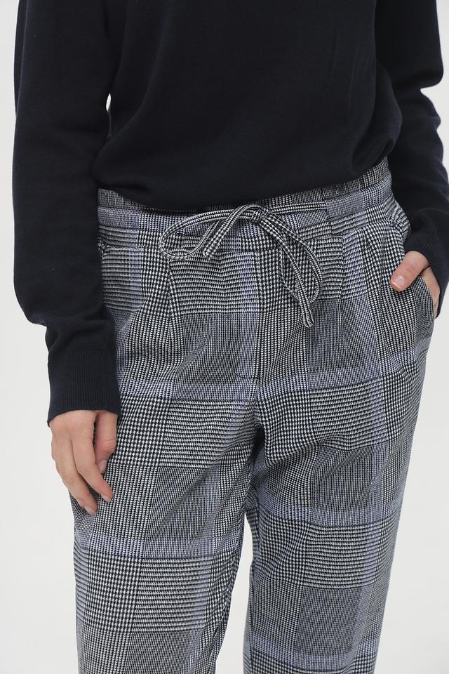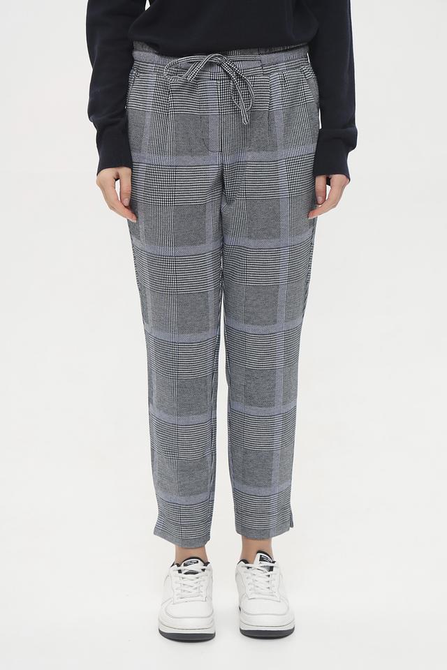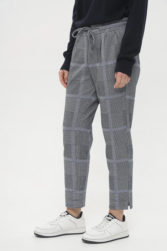 Брюки имеют эластичный пояс с кулиской, что позволяет регулировать посадку по фигуре. Ткань, состоящая из полиэстера, вискозы и эластана, приятна к телу и хорошо держит форму. Укороченный крой делает их идеальными для создания модных образов с кедами или ботинками.