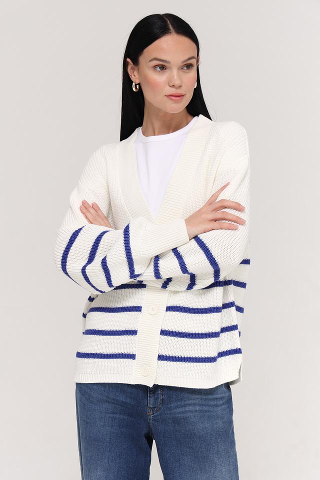 Жакет Tom Tailor белого цвета с синими полосками – стильное и комфортное решение для создания повседневных образов. Изготовлен из хлопка и полиакрила, что обеспечивает приятные тактильные ощущения и простоту в уходе. Состав: хлопок 50%, полиакрил 50%