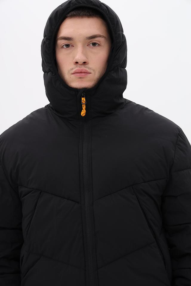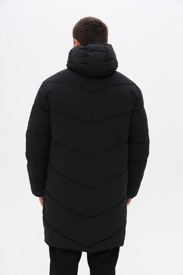 Пальто имеет удлинённый крой, который обеспечивает дополнительную защиту от холода. Стеганая фактура придает изделию стильный вид и удерживает тепло. Капюшон добавляет функциональности и защищает от ветра и осадков.
